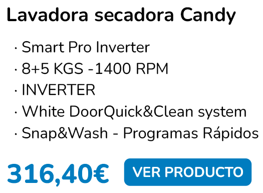 Lavaseca Candy COW4854TWM61S, Smart Pro Inverter 8+5 KGS 1400 RPM, DA, INVERTER, White DoorQuick&Clean system, Snap&Wash, Programas Rápidos,