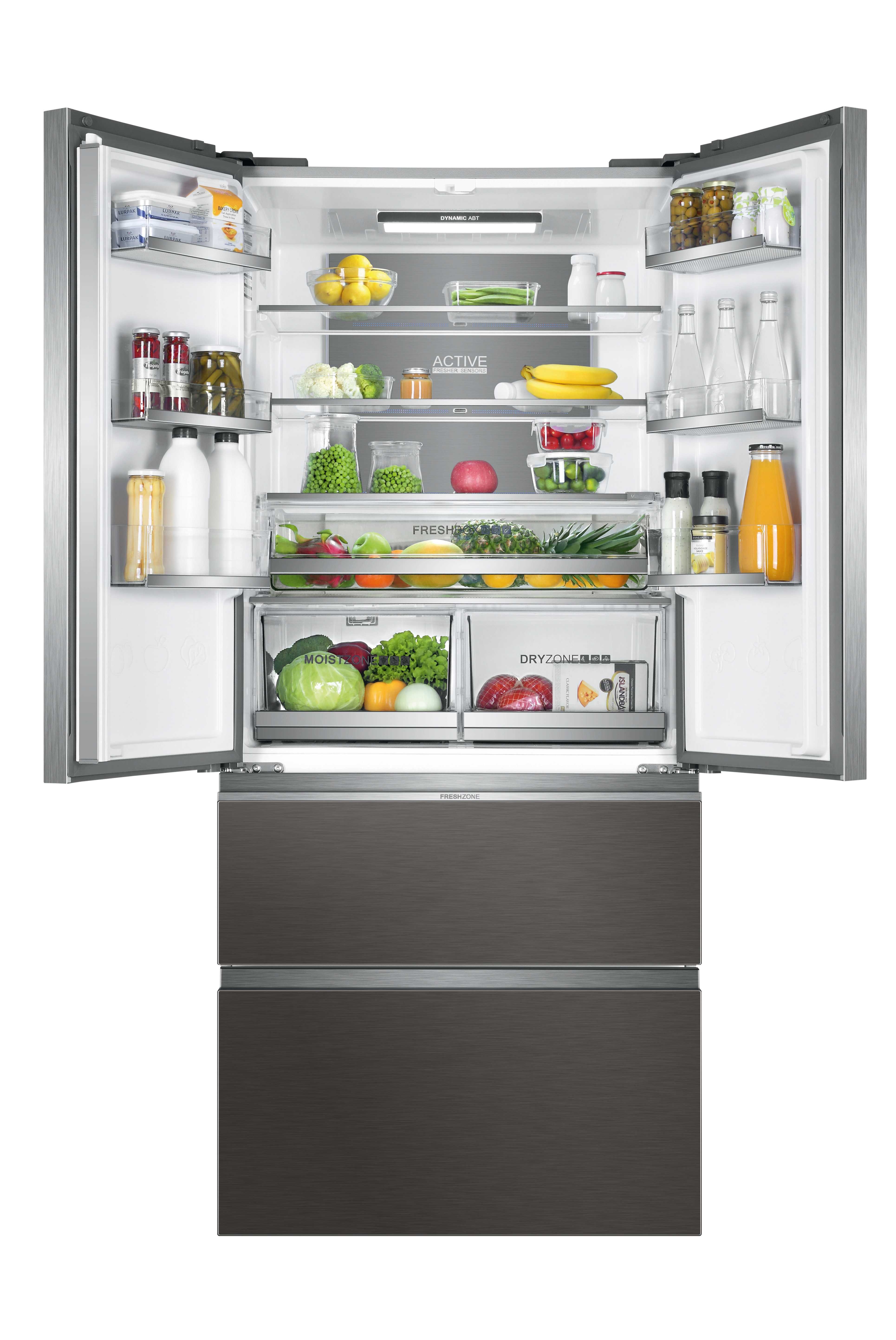 Haier FD 83 Serie 7 HB18FGSAAA, Independiente, Puerta francesa, Plata, Titanio, Tocar, Vidrio, Marco cromado