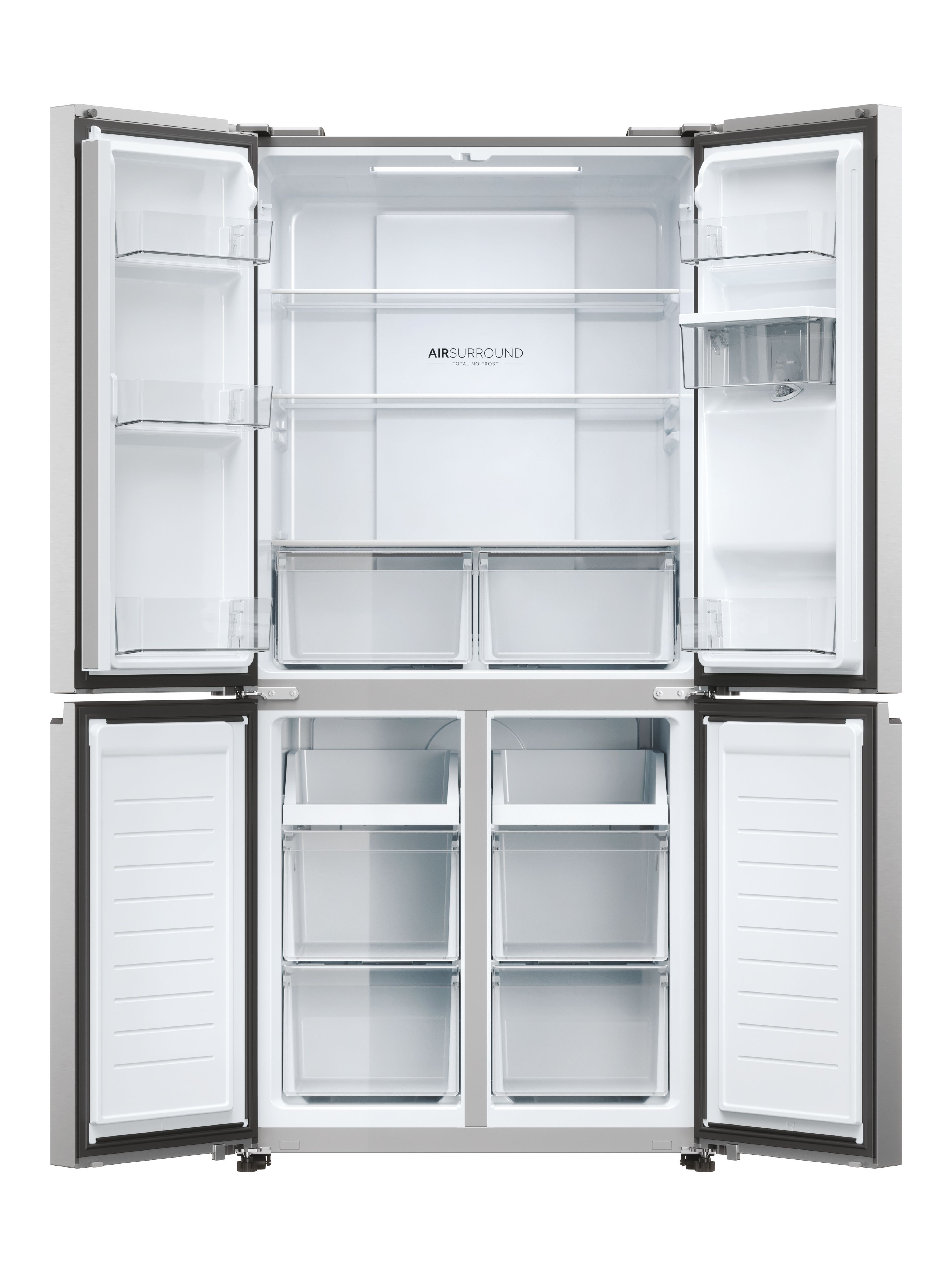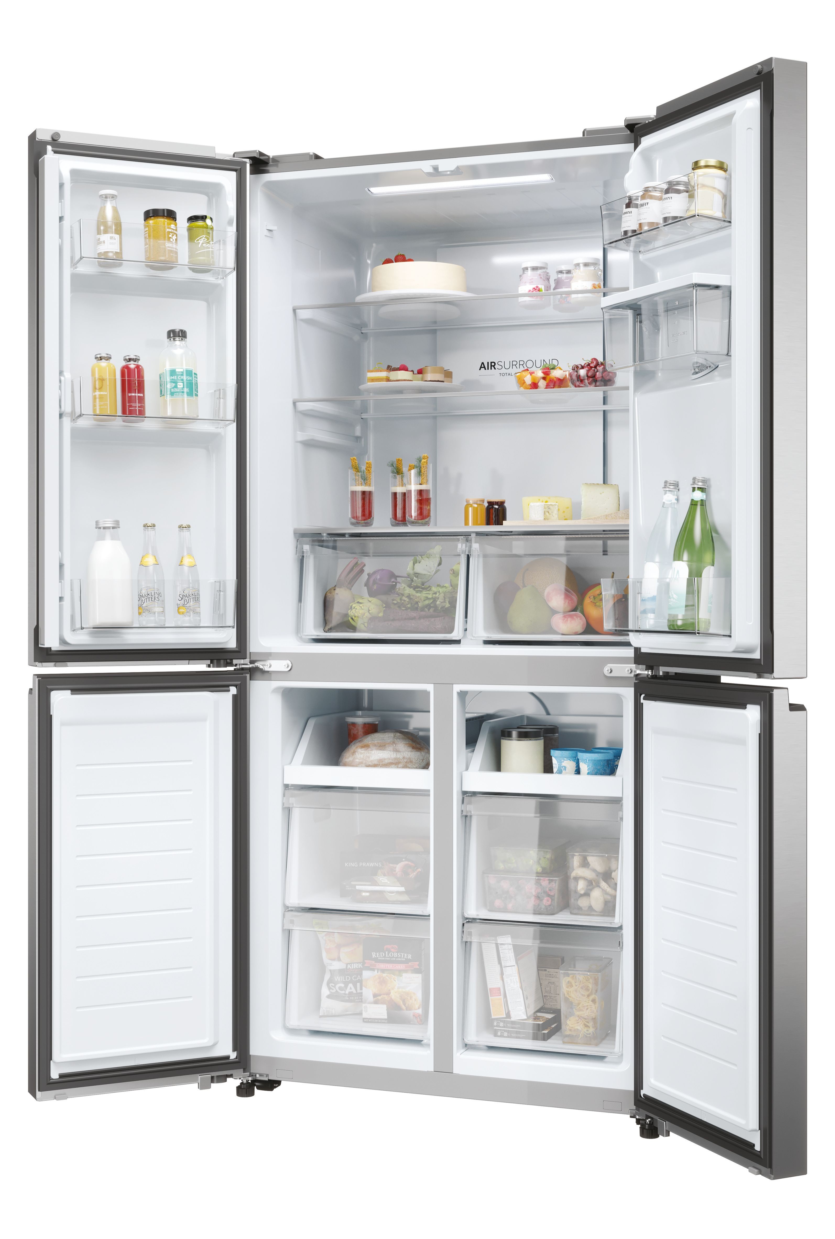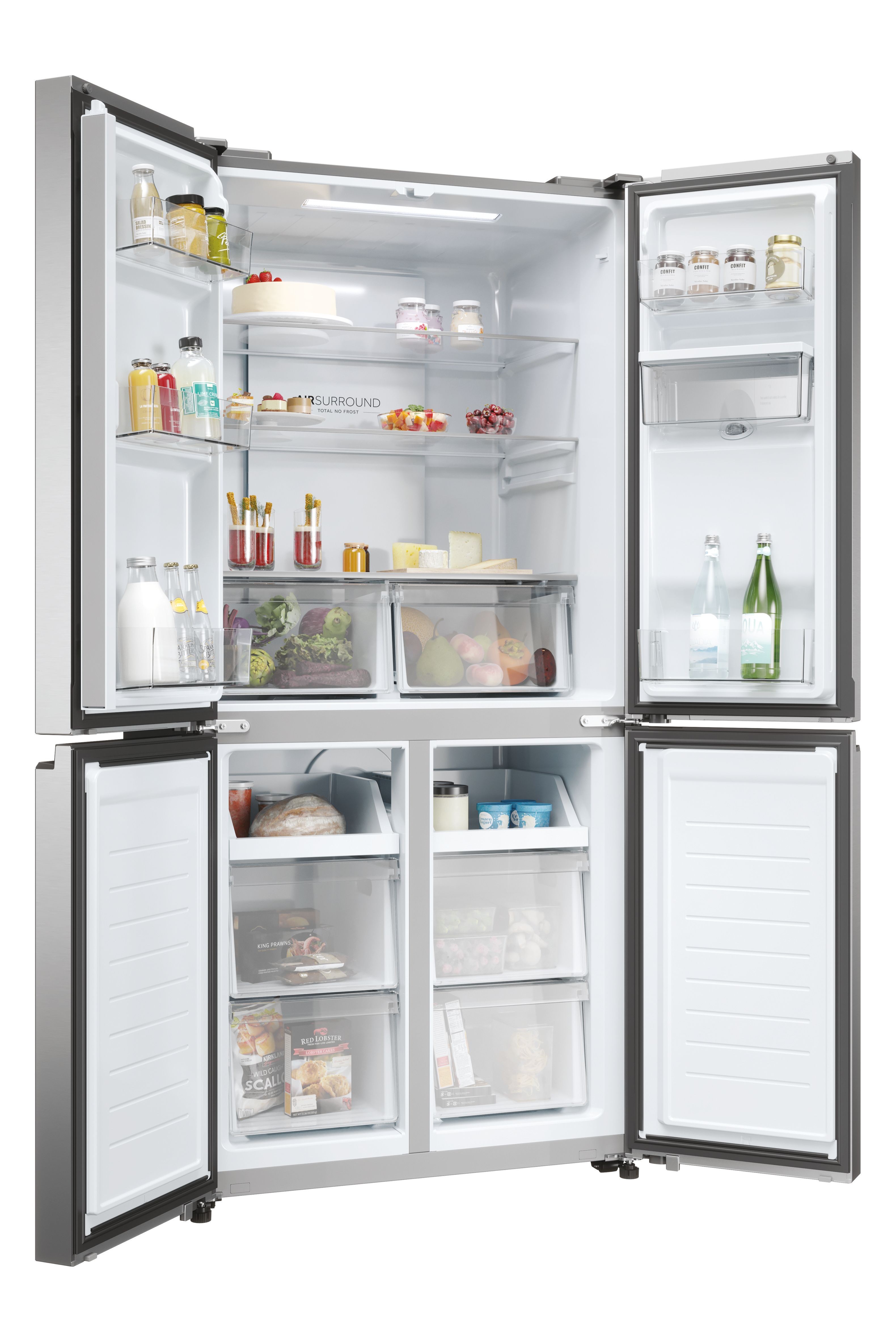Haier Cube 83 Serie 3 HCR3818EWMM, Independiente, Puerta americana, Platino, Acero inoxidable, 4 puerta(s), Botones, Tocar, LCD
