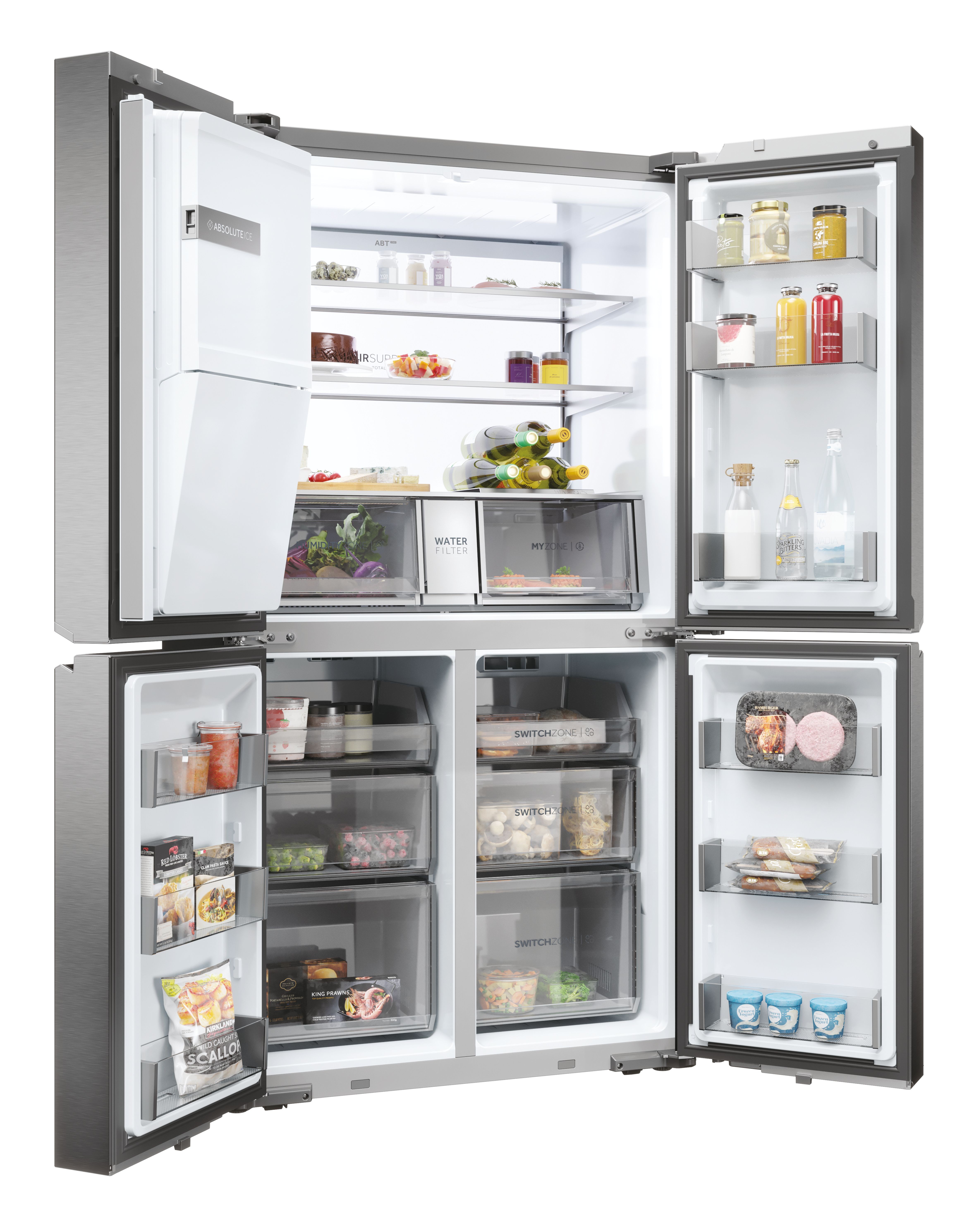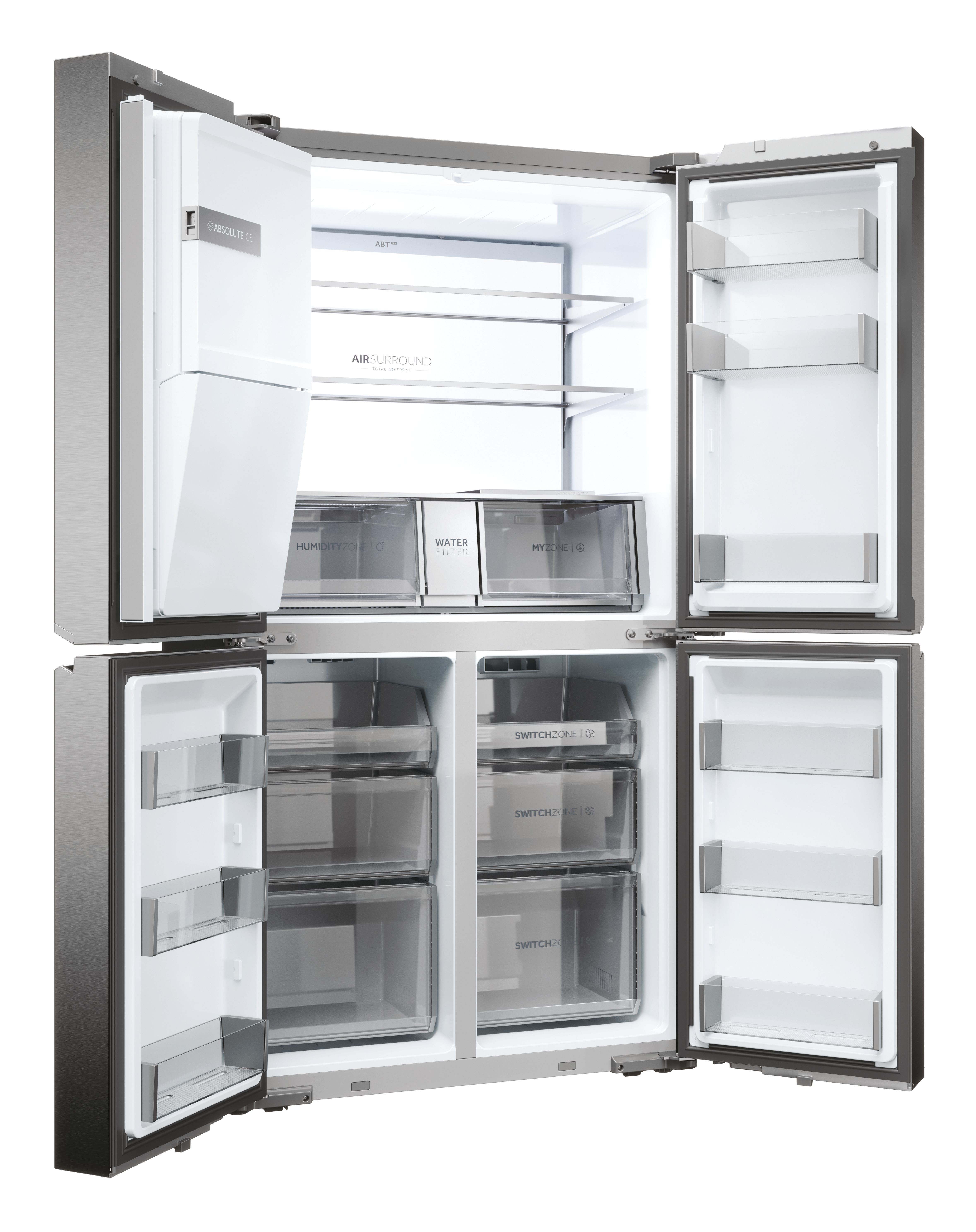 Haier HCR7918EIMP, Independiente, Puerta francesa, Platino, Acero inoxidable, Vidrio, Marco plateado, Plástico