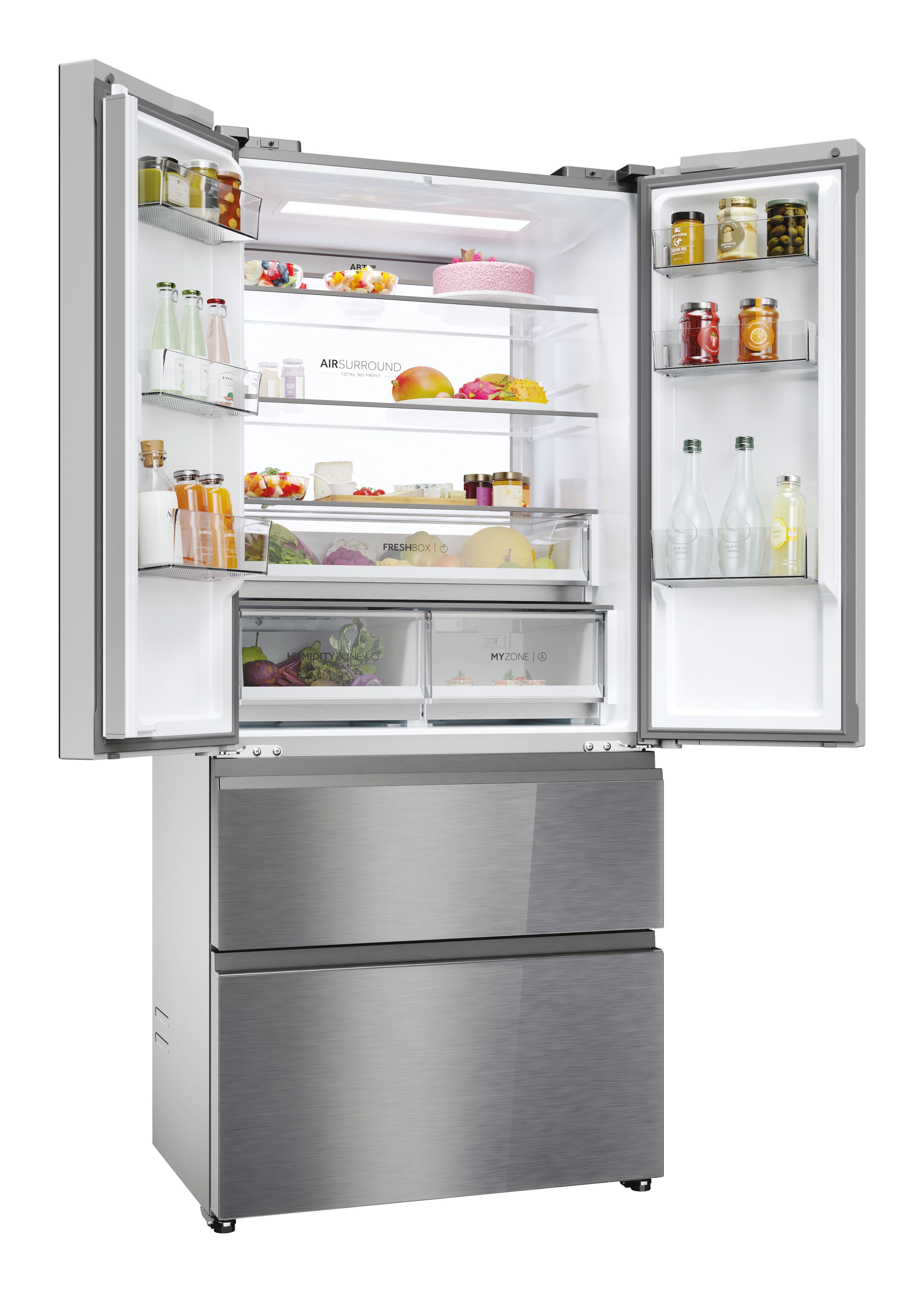 Haier HFR7819ENGC, Independiente, Multipuerta, Acero inoxidable, 4 puerta(s), Tocar, En la puerta