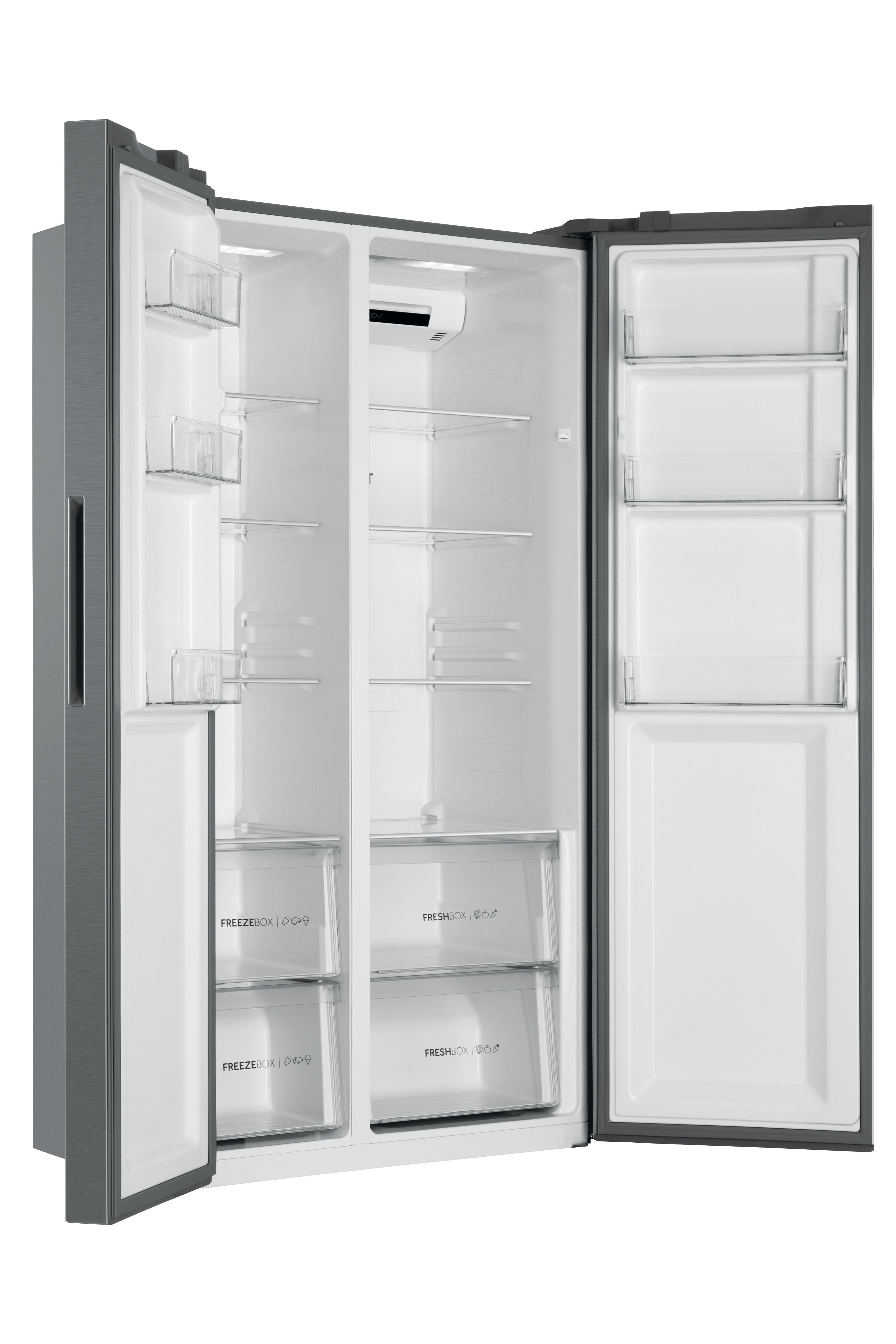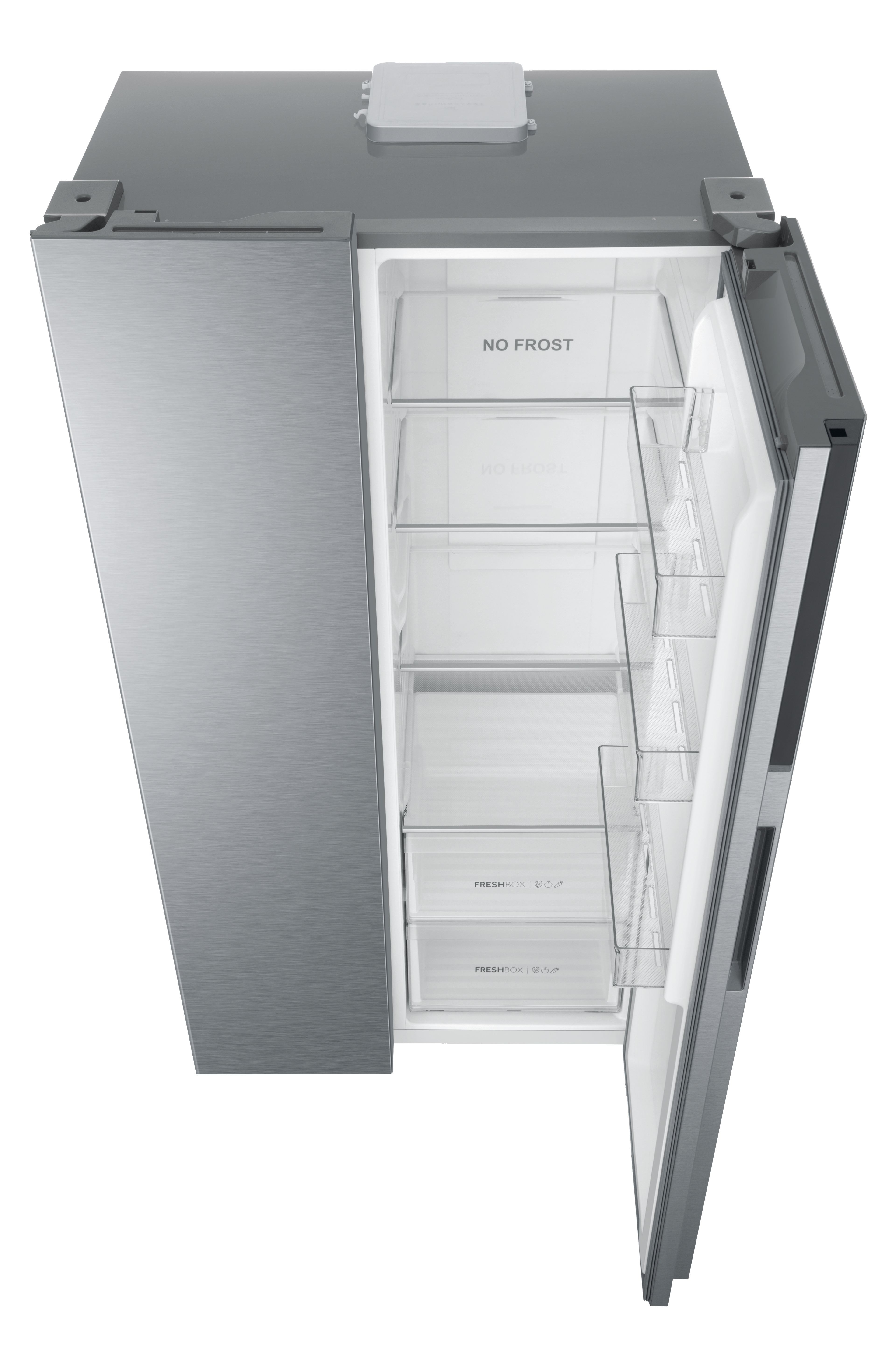 Haier SBS 90 Serie 3 HSR3918ENPG, Independiente, Puerta americana, Plata, Tocar, LED, Vidrio