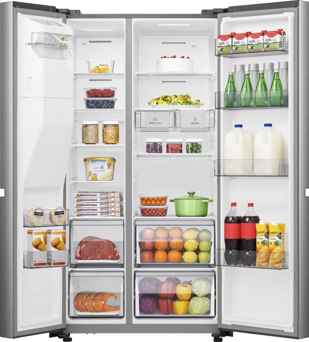 Tecnologías Hisense (almacenamiento de comida) | Aplicación ConnectLife, Dual Temperature Zones, Durable Inverter, Metal-Tech Cooling, Non-plumbed Water Dispenser, PureFlat Design, Recessed Handle, Total No Frost, Touch electronic control, XXL Door Balcony |