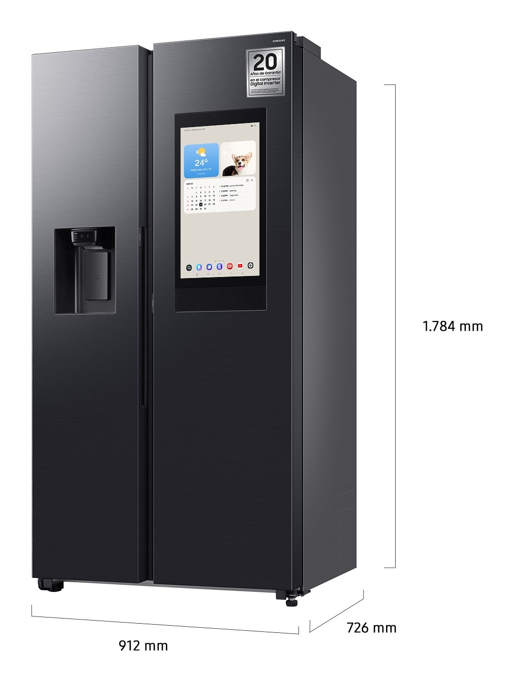 Samsung Series 9 Frigorífico Americano Family Hub Bespoke AI 178cm 614L Clase E Grafito RS90F66BEFEF, Independiente, Puerta americana, Negro, 2 puerta(s), Premium Black Steel, 36/64