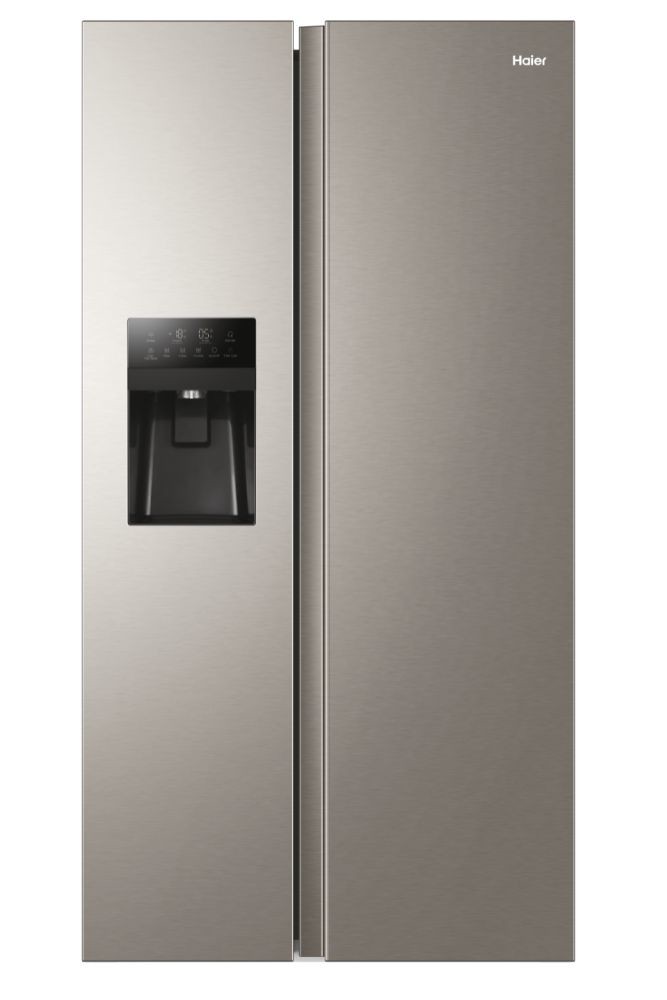 Haier SBS 90 Serie 3 HSR3918FIMP, Independiente, Puerta americana, Gris, Tocar, LED, En la puerta