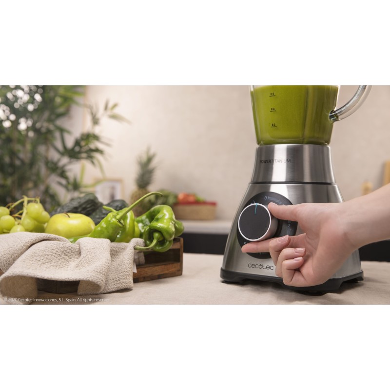 Cecotec Power Black Titanium 1300 Perfectmix, Batidora de vaso, 1,8 L, 1300 W, Negro, Titanio