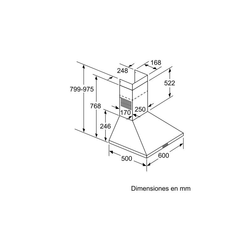Campana Balay 3BC666MX, Pared piramidal, A, Encastrable, 60 cm., Acero, Control mecánico, LEDs, filtros aluminio
