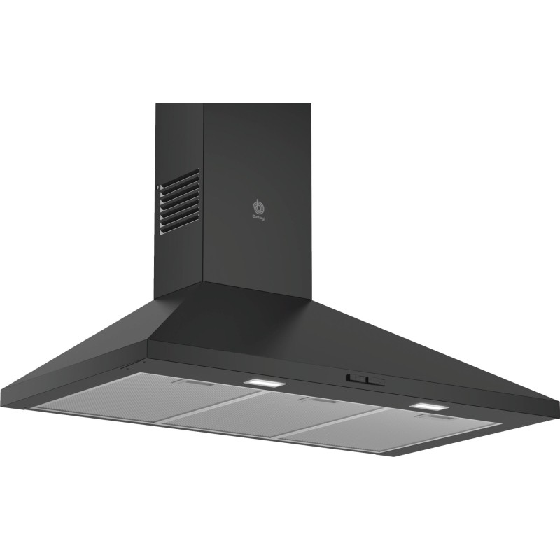 Campana Balay 3BC696MN, Pared piramidal, A, Encastrable, 90 cm., Negro, Control mecánico, LEDs, filtros aluminio