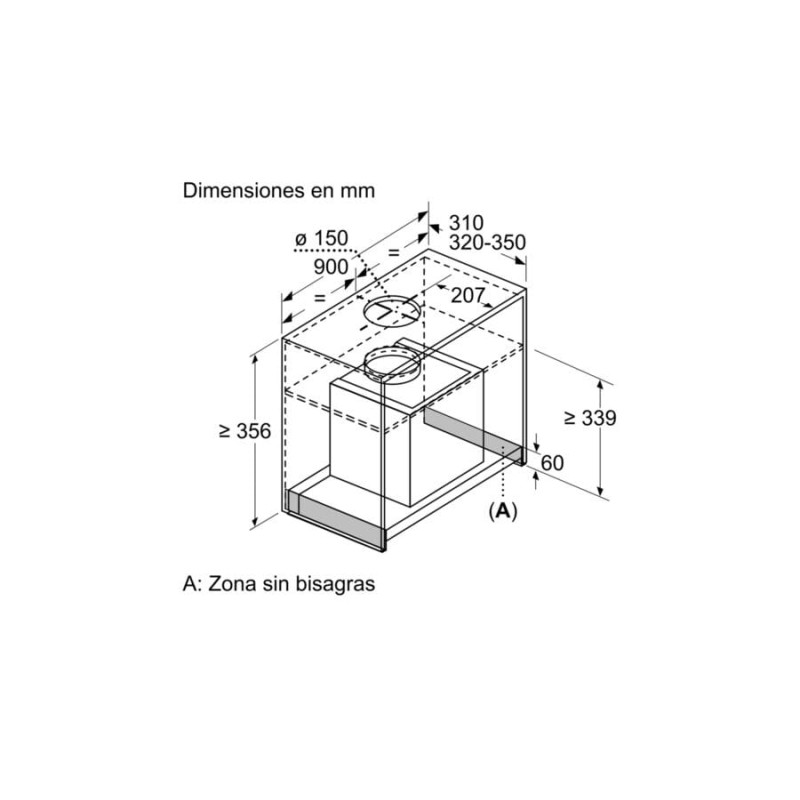 Campana Balay 3BD896MX, Decorativa integrable, A, Encastrable, 90 cm., Acero, Control mecánico, LEDs, filtros aluminio