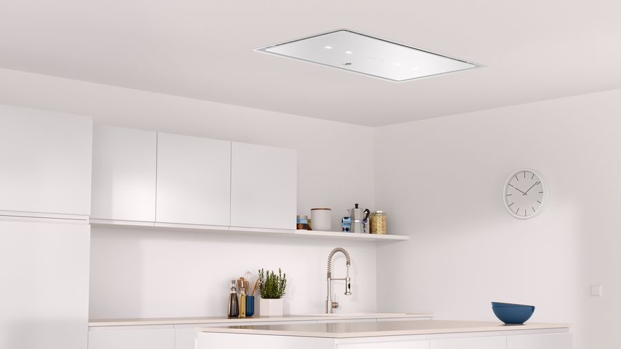 Campana Balay 3BE296ABC, Campana, Extractor de techo , B, Encastrable, 90x50 cm., HC, Cristal blanco, Control placa-campana, sensor modo auto, motor alta eficiencia, mando a distancia, int.blindado, LEDs, asp. perimetral.