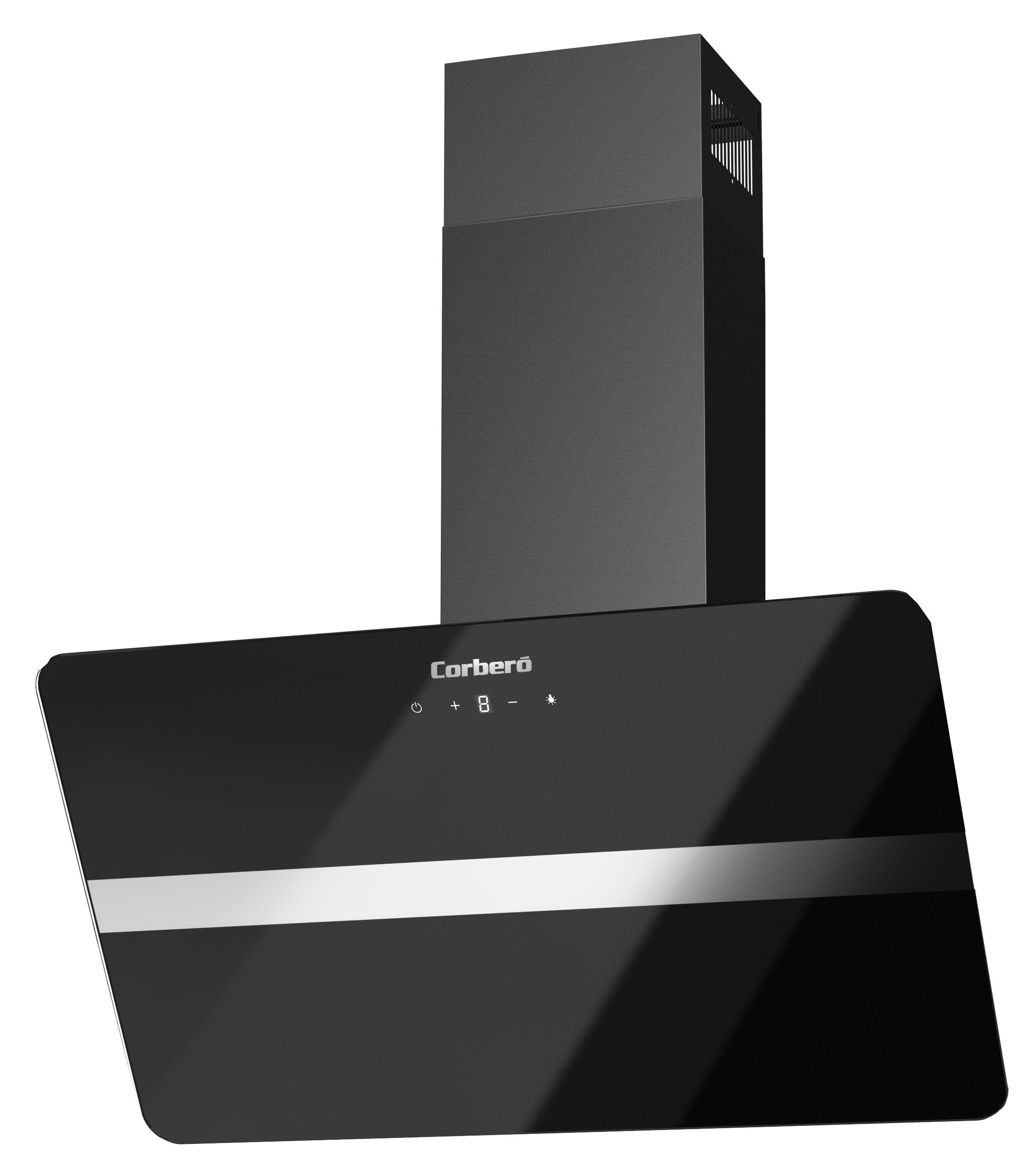 Campana Corbero VICTORIA760B, Decorativa, Cristal Negro 70 cm, 165W, 3 Velocidades, Control Touch, Caudal 594,2 m3/h, Color Vidrio Templado, 1 X Filtro de Aluminio, Filtro Carbón,A, 422X700X310
