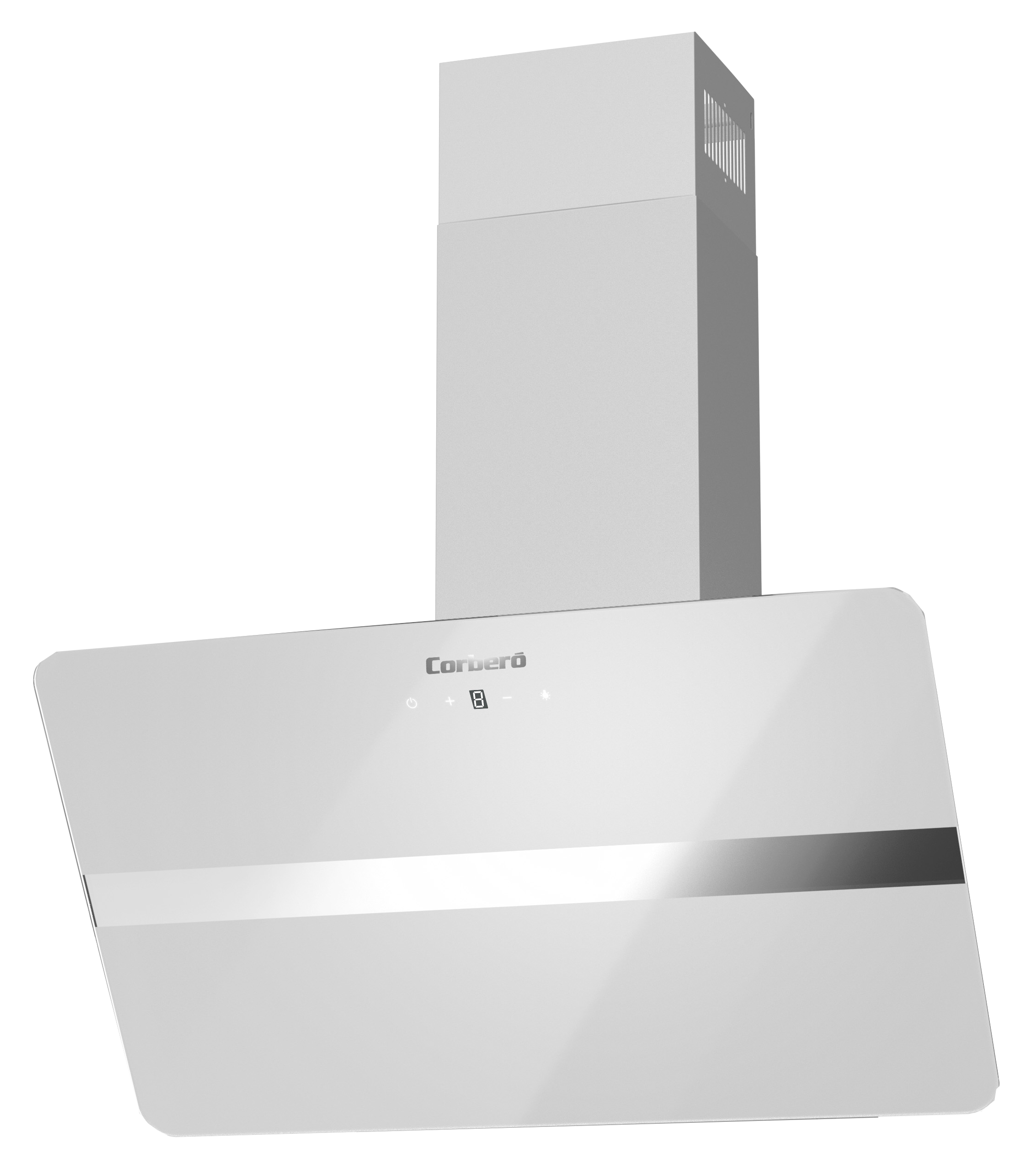 Campana Corbero VICTORIA760W, Decorativa, Cristal Blanco 70 cm, 165W, 3 Velocidades, Control Touch, Caudal 594,2 m3/h, Color Vidrio Templado, 1 X Filtro de Aluminio, Filtro Carbón, Eficiencia Energética A, 422X700X310 mm.