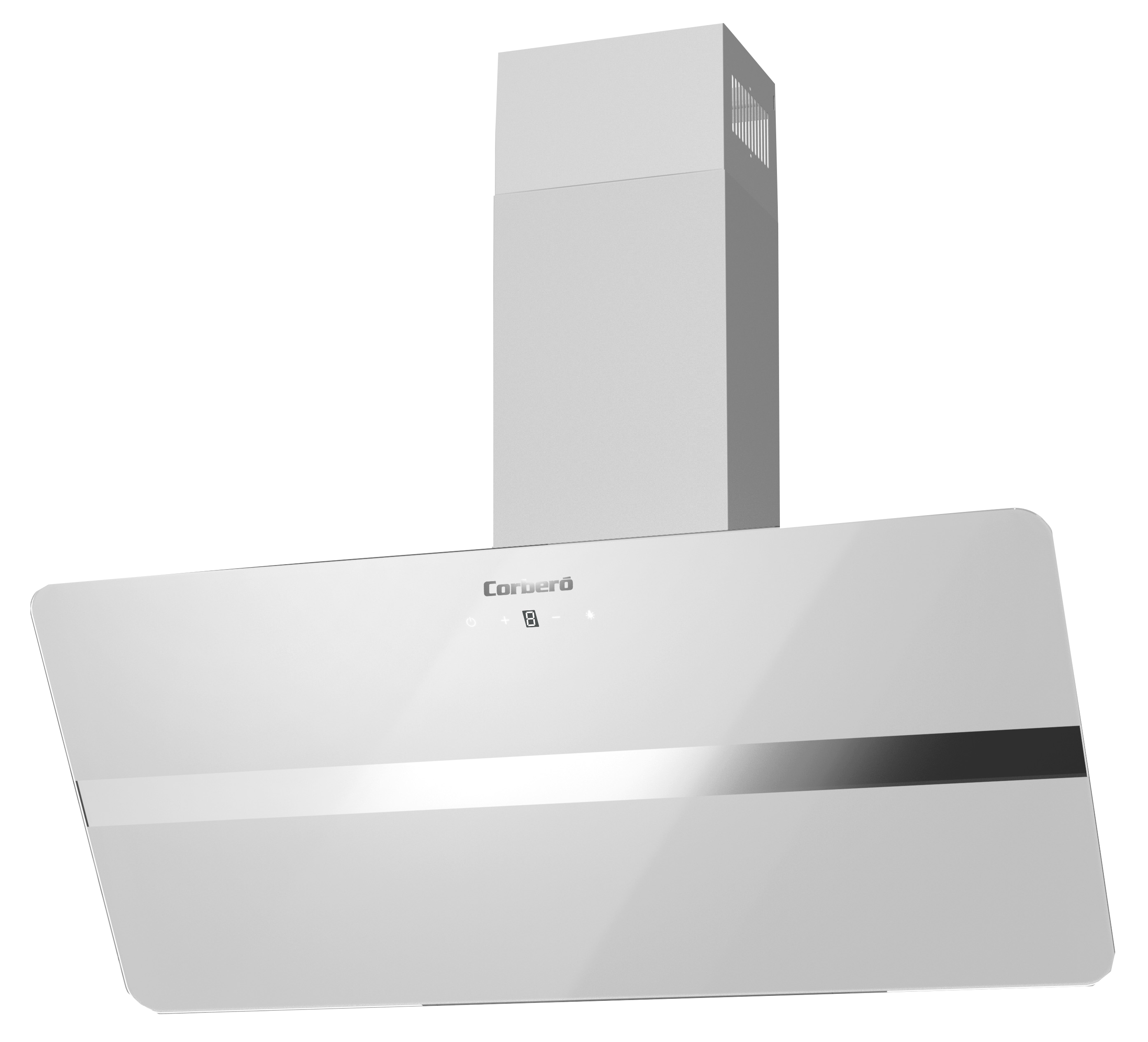 Campana Corbero VICTORIA960W, Decorativa, Cristal Blanco 90 cm, 165W, 3 Velocidades, Control Touch, Caudal 594,2 m3/h, Color Vidrio Templado, 1 X Filtro de Aluminio, Filtro Carbón, Eficiencia Energética A, 422X900X310 mm.