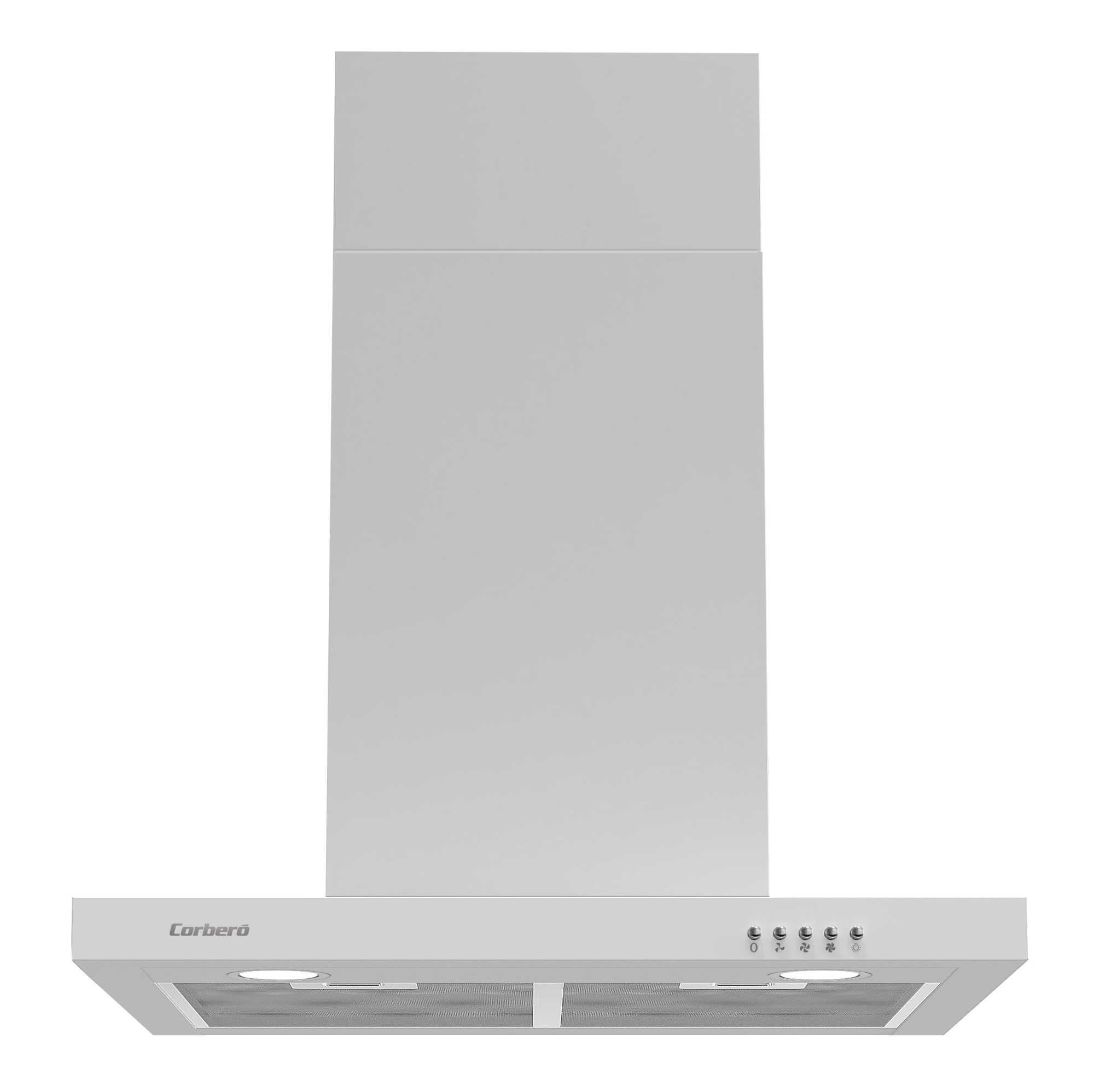 Campana Corbero VOSTOK660W, Decorativa Horizontal Blanco, 60 cm, Pulsador, Caudal 647,7 m3/h, 165W, 3 Velocidades, 2 X Filtro de Aluminio, Filtro Carbón, Eficiencia Energética A, 500X600X290 mm.