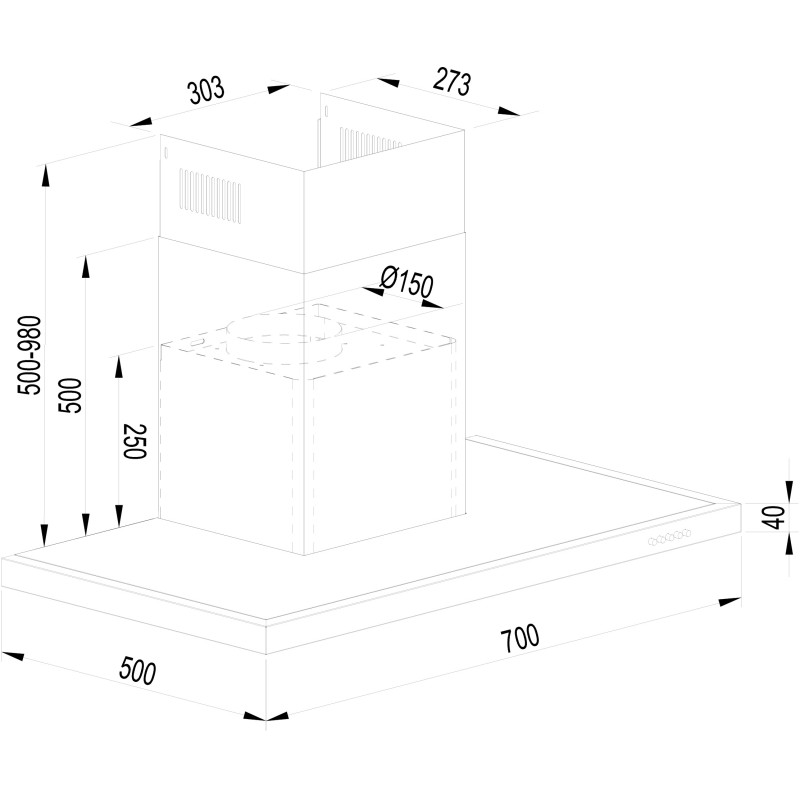 Campana Corbero VOSTOK760W, Decorativa Horizontal Blanco, 70 cm, Caudal 647,7 m3/h, 165W, 3 Velocidades, 2 X Filtro de Aluminio, Filtro Carbón, Eficiencia Energética A, 500X700X290 mm.