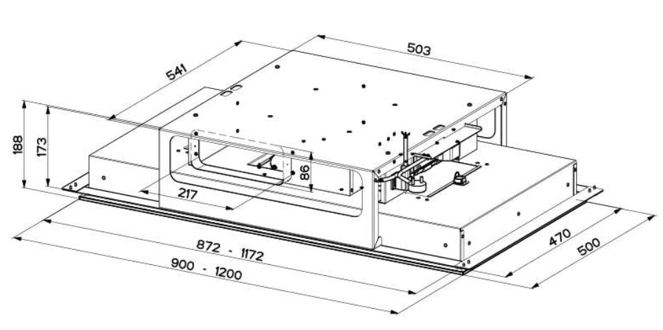 Campana Mepamsa CIELO SLIM 90 BLANCA, Techo, A+, Máx/Int: aspiración 620/700 m3/h; Presión 520/690 (Pa); Nivel sonoro 70/72 db(a), Led Bar velo 4000K , Aspiración perimetral , mando a distancia incluido, 90 cm, Blanco