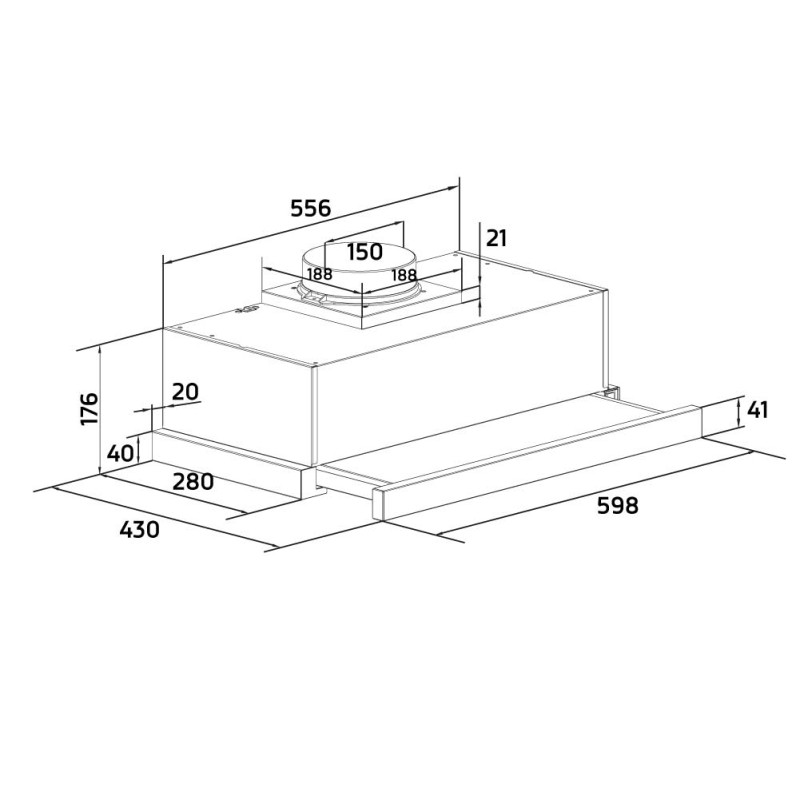 Campana Orbegozo TL07160BL, telescópica. 1 motor de 65w. Extracción 308.2 m3/h Clase energética C. Ruido: máx. 63db, min. 57db. 1 bombilla LED de 2.5w. 3 niveles de potencia. 2 filtros de aluminio desmontables. Acabado frontal en BLANCO. Dimensiones (mm):