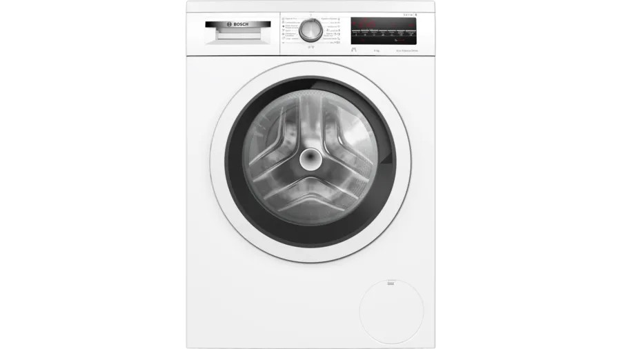 Bosch Serie 6 WUU28T66ES. Tipo de carga: Carga frontal. Capacidad nominal: 9 kg, Clase de secado por giro: B, Nivel de ruido (spin): 72 dB, Nivel de ruido (lavado): 72 dB, Máxima velocidad de centrifugado: 1400 RPM. Color del producto: Blanco. Ancho: 598 mm, Profundidad: 599 mm, Altura: 845 mm. Clase de eficiencia de energía: A