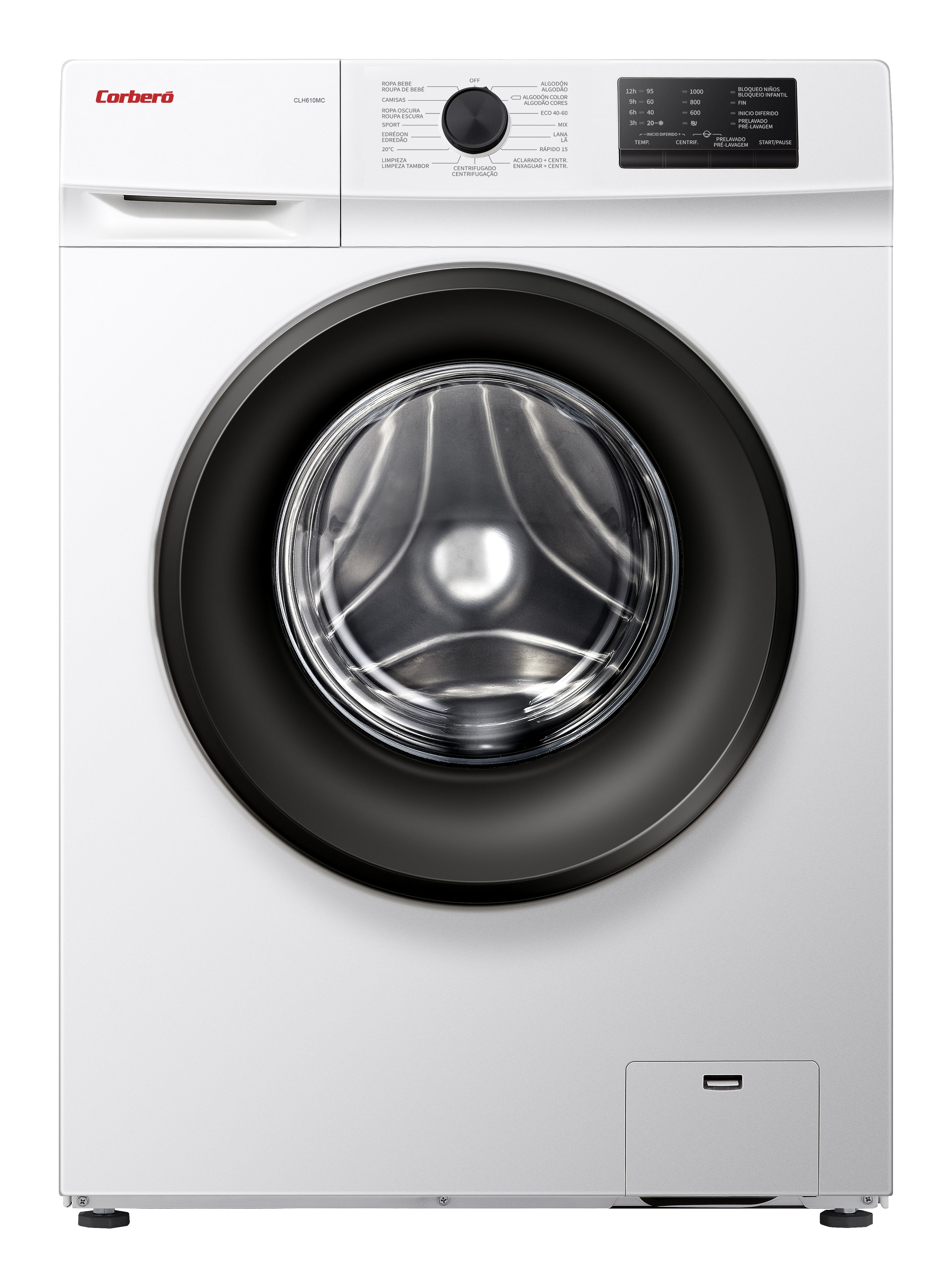Lavadora Corbero CLH610MC, Carga Frontal, 6 Kg, 1000 Rpm, Color Blanco, 15 Programas, Inicio diferido, Lavado Rápido, Eficiencia Energética E, 460X595X850 mm.