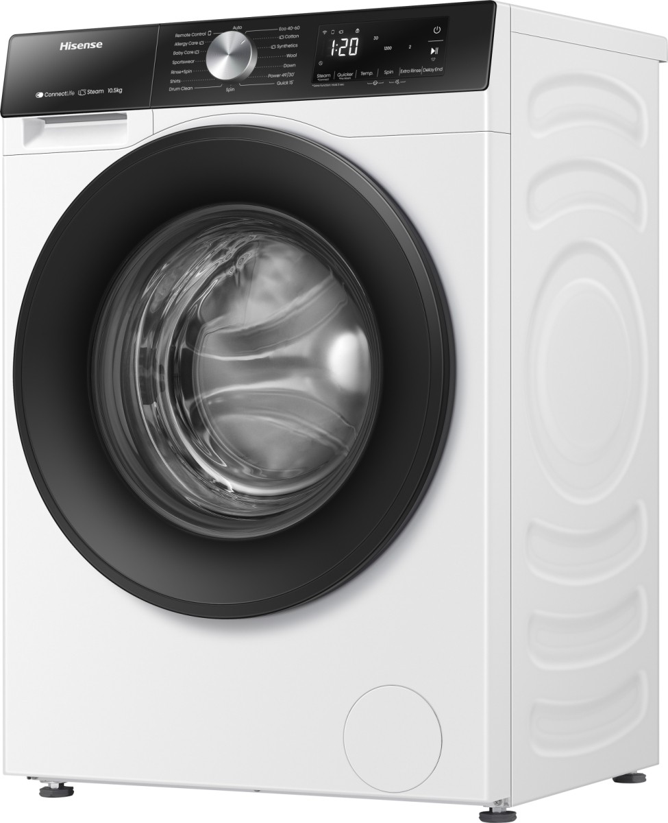 Hisense WF3S1043BW3, Carga frontal, 10,5 kg, B, 72 dB, 1400 RPM, A