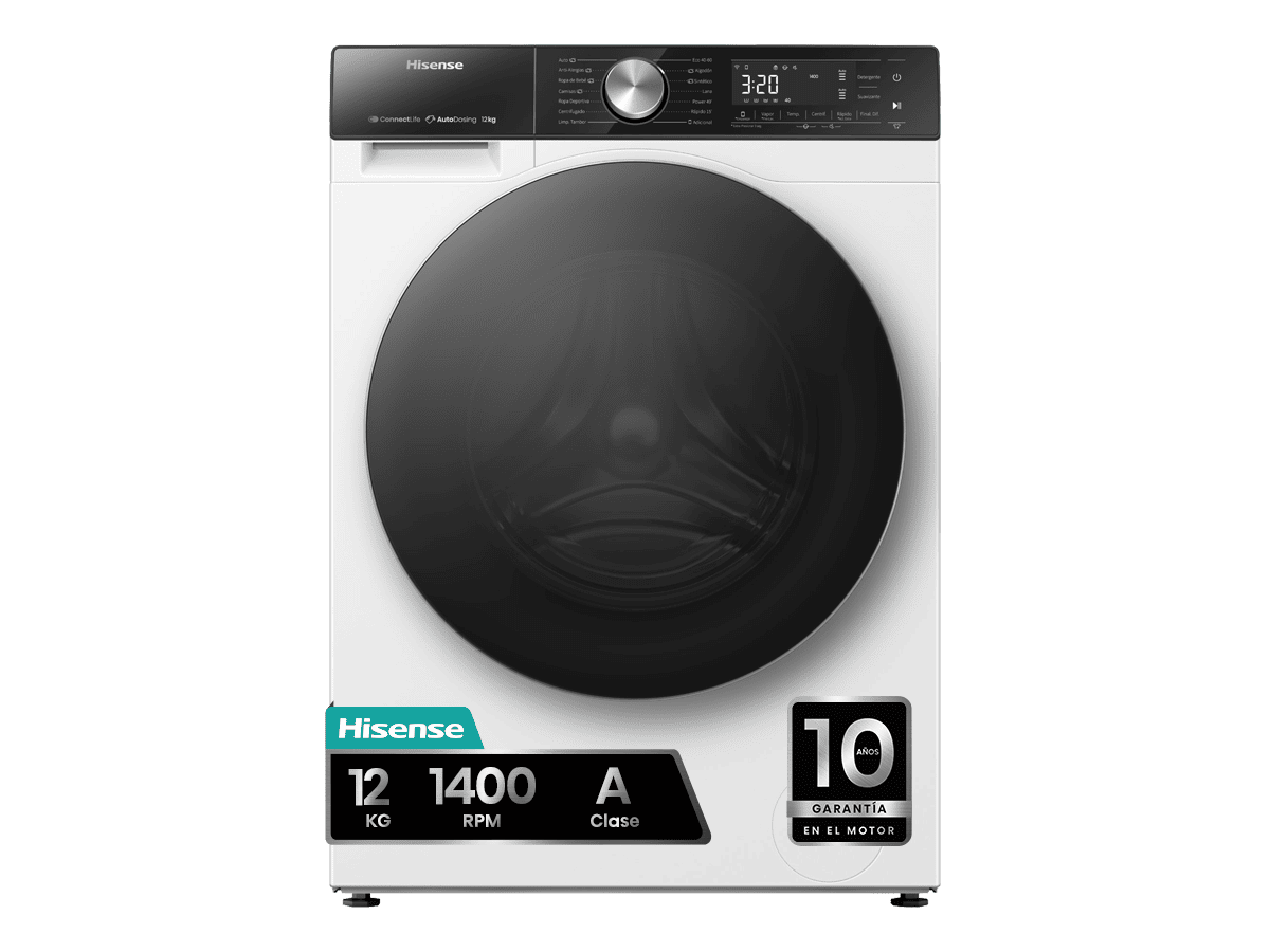 Lavadora Hisense WF5S1245BW , Libre Instalación, A, Capacidad 12 Kg , 1400 rpm, Color Blanco ALTO 84,5cm x ANCHO 59,5cm x FONDO 64cm , Auto Dosificación (Opcional) , Conectividad WiFi , Programación Asistida , Monitor de Consumo , Smart Pair , Hygie