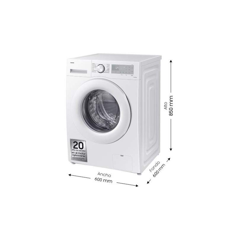 Lavadora Samsung WW11DG5B25THEC, A -10%, 11 KG, Wifi, 850x600x600 mm, Blanco, SMART AI, Ecobubble AI, Super Speed 39´, Motor Digital Inverter,1.400 rpm y Modo Vapor. Puerta blanca y Nuevo Display LED con window panel black. Fondo total (inc. ojo de bue