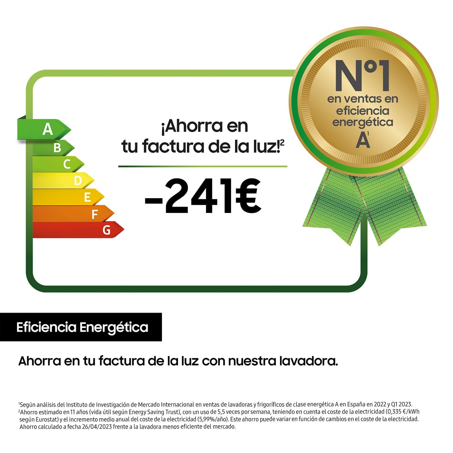 [7]. AI Energy Mode te ayuda a gestionar el uso de energía, y el modo 'Home Care' mantiene la lavadora en las mejores condiciones. Además, si tienes una secadora en casa puedes emparejarla con tu lavadora.