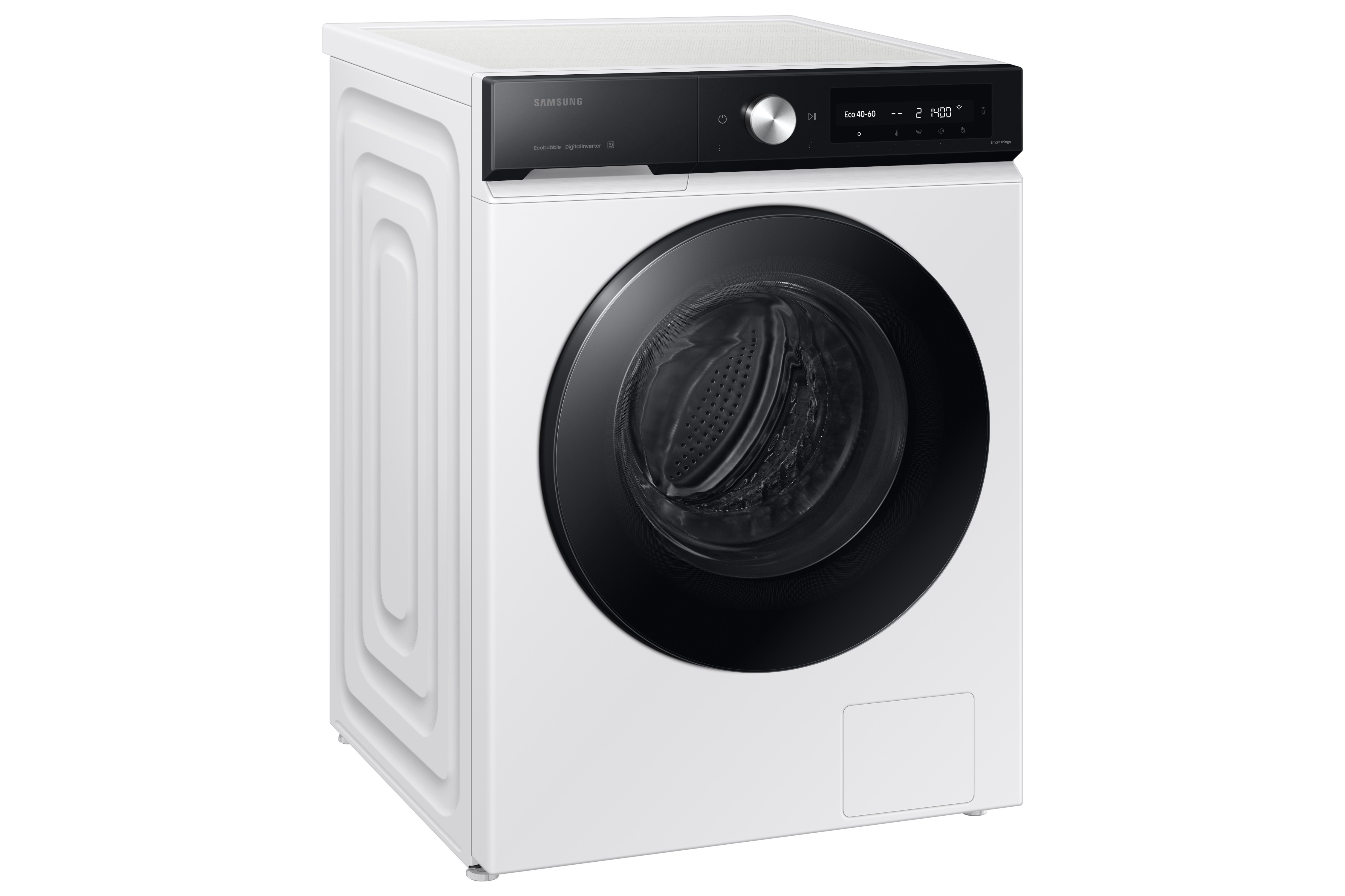 Lavadora Samsung WW90DB7U94GEU3, A -20%, 9 KG, Wifi, 850x600x600 mm, Blanco, SMART AI, Diseño Bespoke, Autodosificador AI, Ecobubble AI, Motor Digital Inverter, Super Speed 39´, 1.400rpm, Modo Vapor, AI Control, y WIFI. Puerta negra y Disply SUX con w