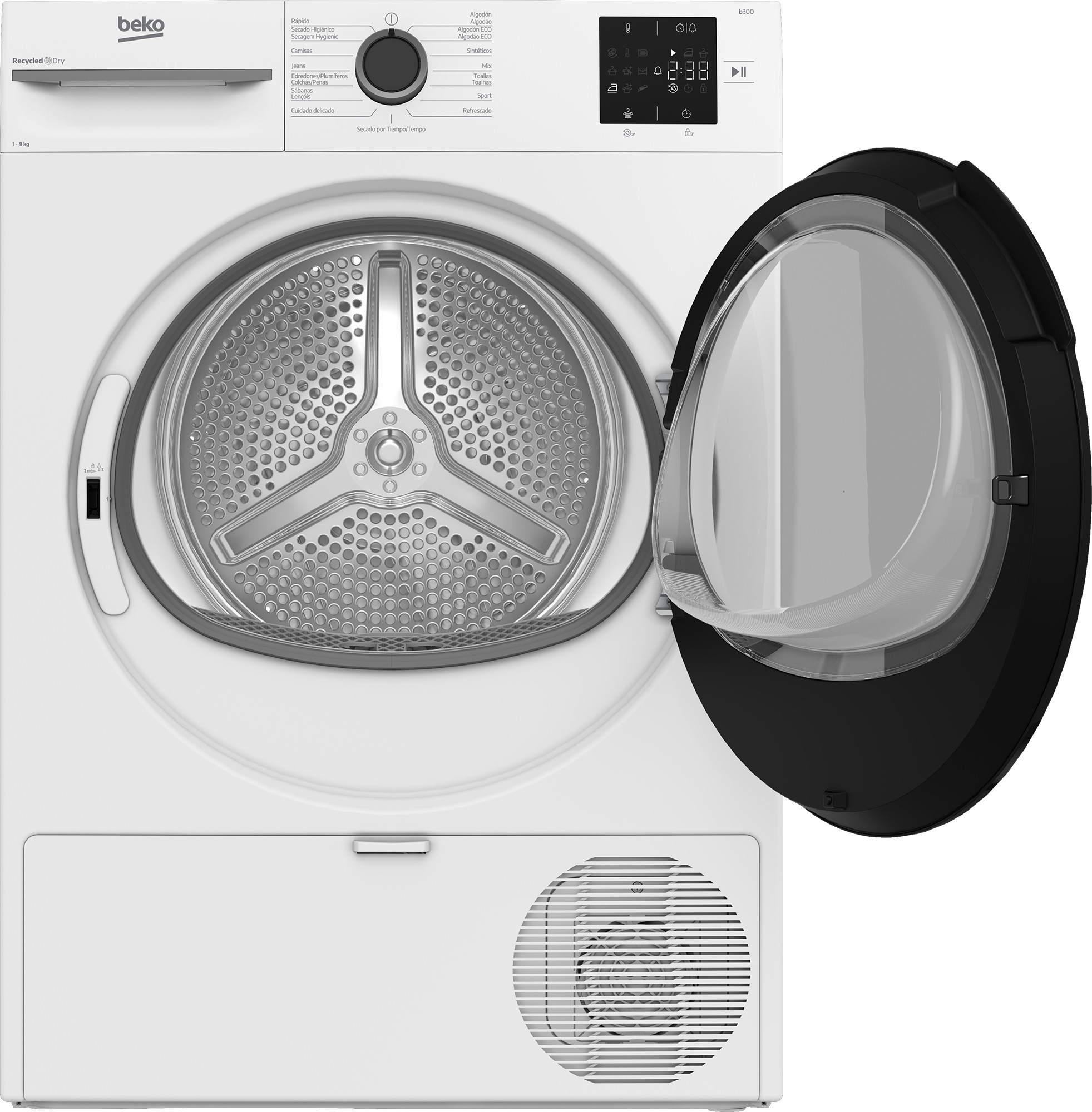 | Programas de secado | Algodón, Cotton eco, Ropa de abrigo/Edredón de plumas, Drying rack/TimeDry, Cuidado delicado, Hygienic drying, Vaquero/denim, Mix, Rápido 14 min, Refresh, Shirts, Deporte, Sintético, Toalla |