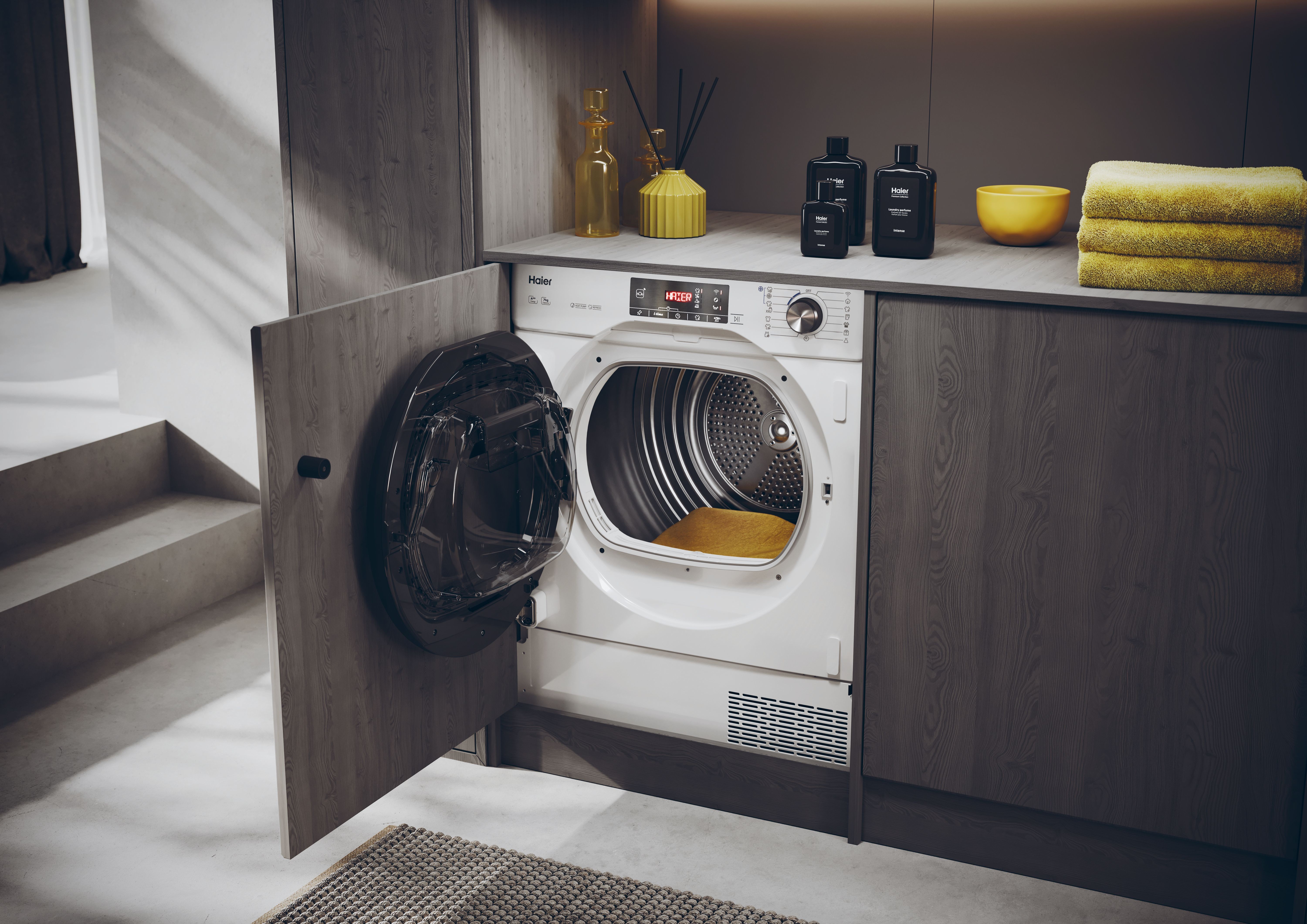 Haier HDBI H7A2TBEX-S, Integrado, Carga frontal, Bomba de calor, Blanco, Giratorio, Izquierda