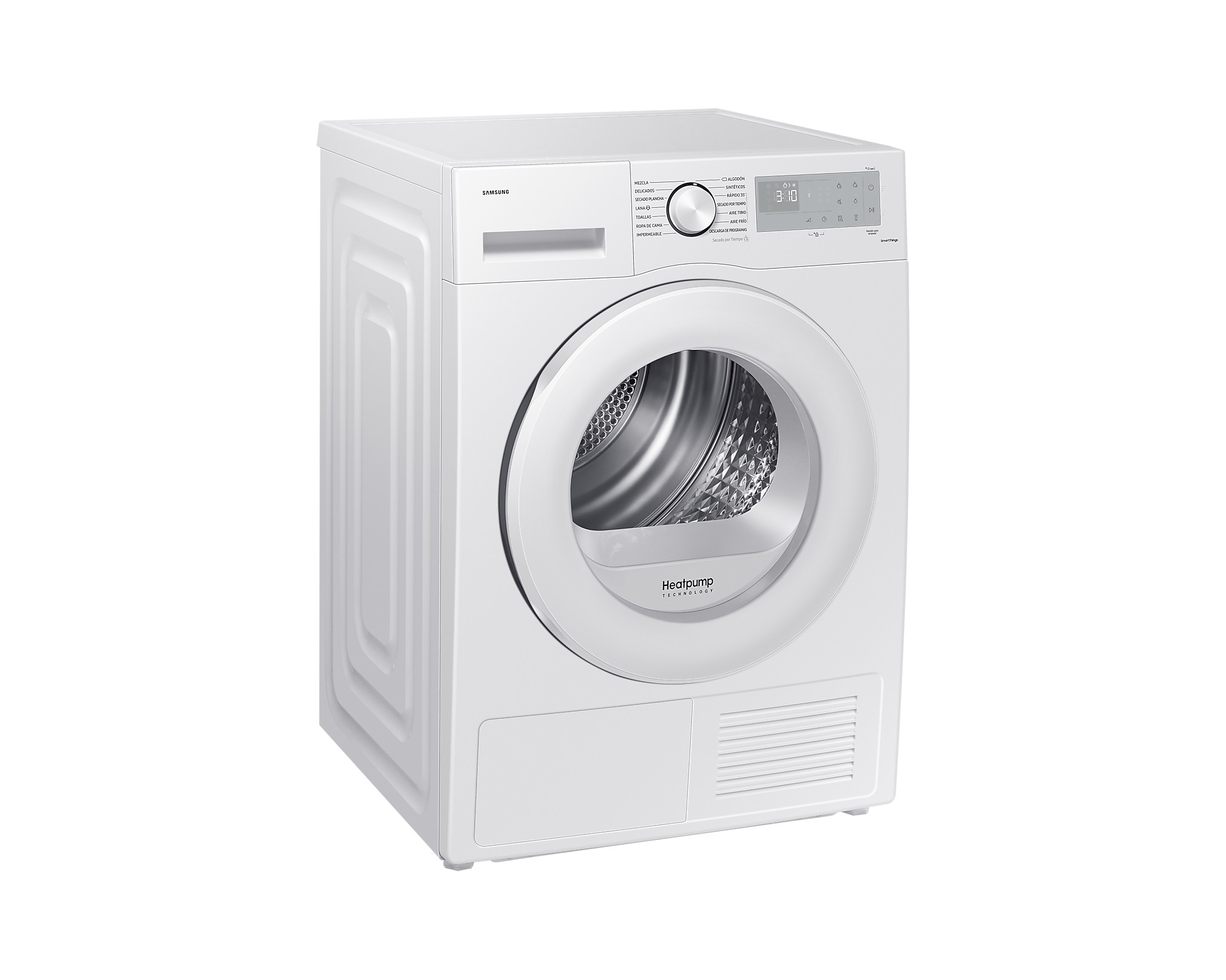 Samsung DV80CGC0B0TH. Tipo de instalación: Independiente, Tipo de carga: Carga frontal, Sistema de secado: Bomba de calor. Capacidad nominal: 8 kg, Condensation efficiency class (old): B, Programas de secado: Ropa de cama, Algodón, Delicado/seda, Secado de plancha, Lencería, Mix, Ropa deportiva/exterior,.... Consumo de energía: 1,85 kWh, Consumo de energía anual: 235 kWh, Fuente de calor: Eléctrico. Profundidad: 600 mm, Ancho: 600 mm, Altura: 850 mm. Ancho del paquete: 670 mm, Profundidad del paquete: 695 mm, Altura del paquete: 895 mm