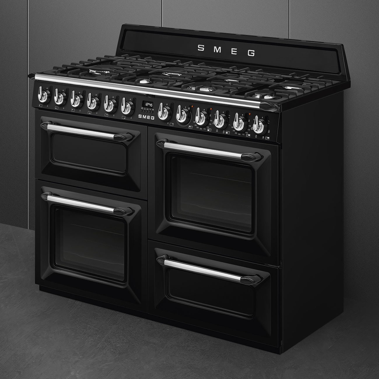 Smeg TR4110BL1, Cocina independiente, Negro, Botones, Giratorio, Black, Acero inoxidable, Frente