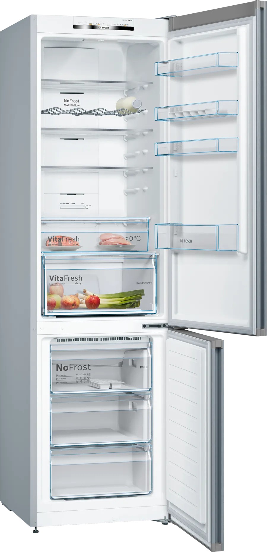 Combi Bosch KGN39VIDB, No Frost, D, Libre instalación, 203x60x66 cm., 368 litros, Puertas Acero antihuellas, VitaFresh. Tirador vertical integrado.