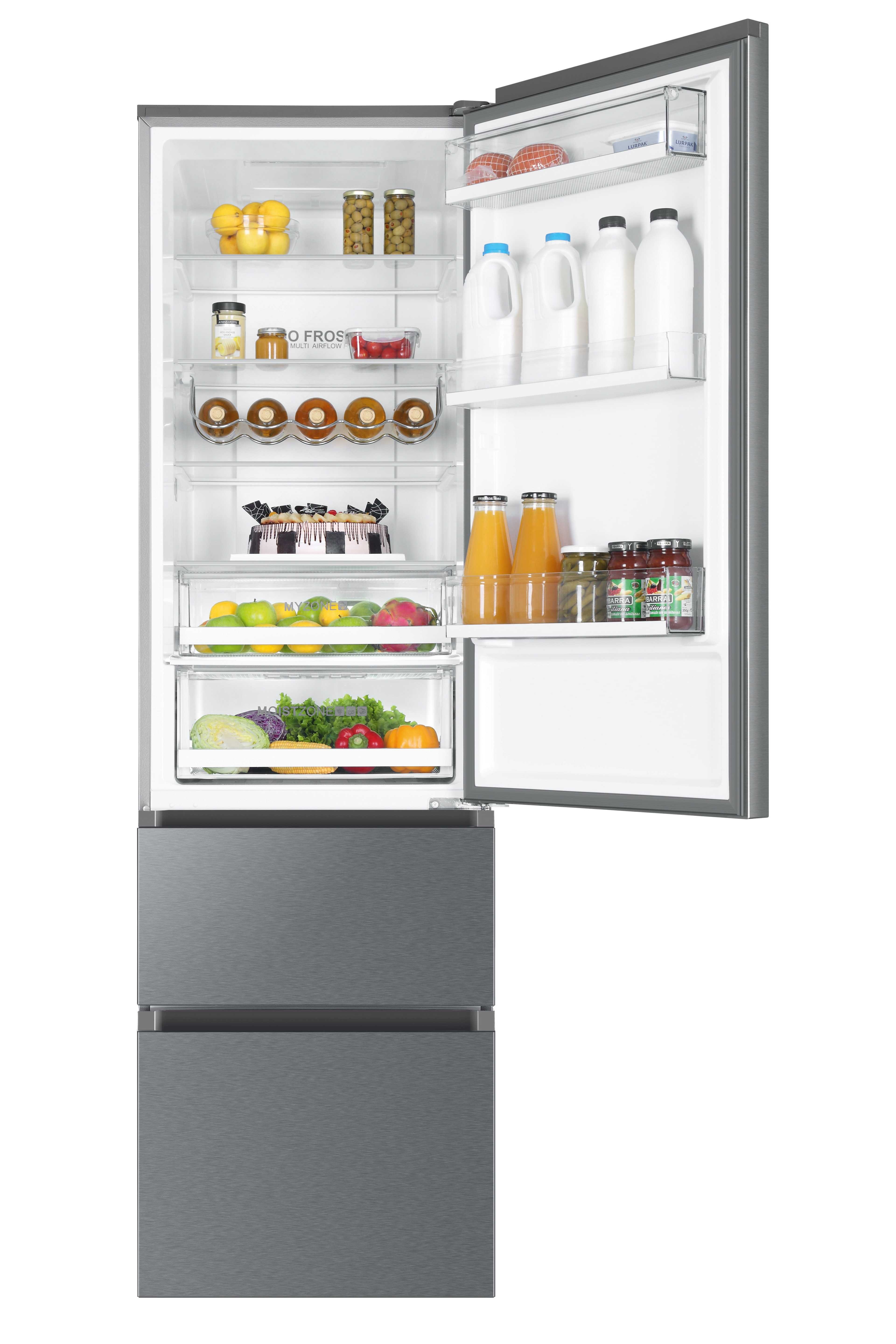 Haier 3D 60 Serie 3 A3FE837CGJ, 371 L, T, 10 kg/24h, D, Compartimiento de zona fresca, Plata, Titanio