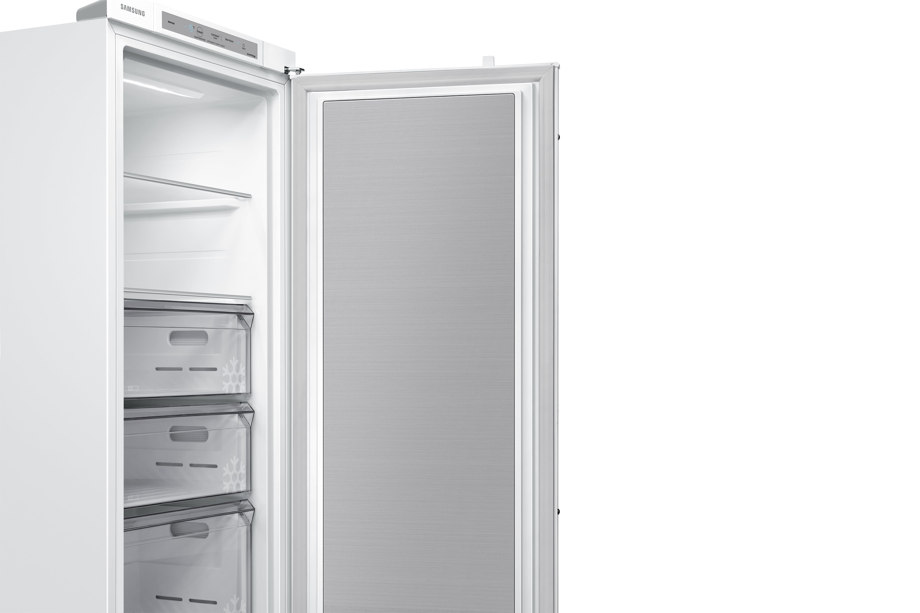 Samsung BRZ22700EWW. Congelador, capacidad neta: 218 L, Clase climática: SN-T, Capacidad de congelación: 12 kg/24h, Tiempo de almacenamiento en caso de fallo de alimentación: 15 h, Nivel de ruido: 35 dB, Índice Star: 4*, Sistema de descongelado. Bisagra para puerta: Derecho. Clase de eficiencia de energía: E, Consumo de energía anual: 238 kWh. Color del producto: Blanco