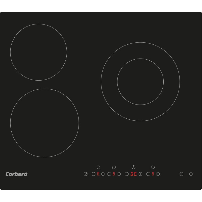 Conjunto Corbero CCHEVM852, Horno + Placa, Horno Multifunción, 8 Programas, 65 L, Potencia 3000W, Luz Interior, Eficiencia Energética A, Vitrocerámica 3 Zonas, Control Touch Control, Zona Grande 21 Cms, Potencia 6500W, 9 Niveles Potencia, 595X595X575 / 59