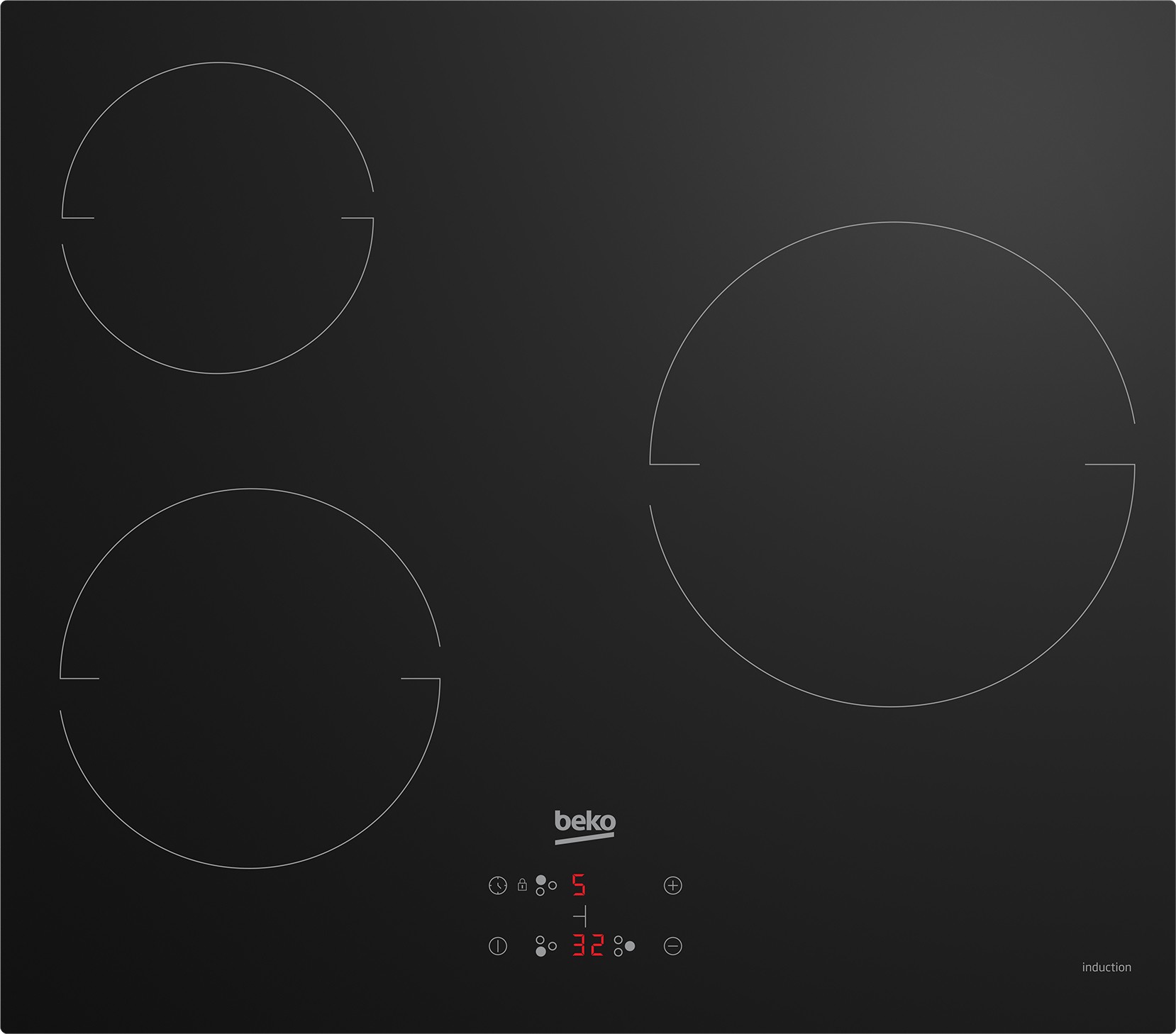 Beko BBSE12120XD, Cerámico, 3 zona(s), Vidrio y cerámica, Negro, Tocar, 58 cm