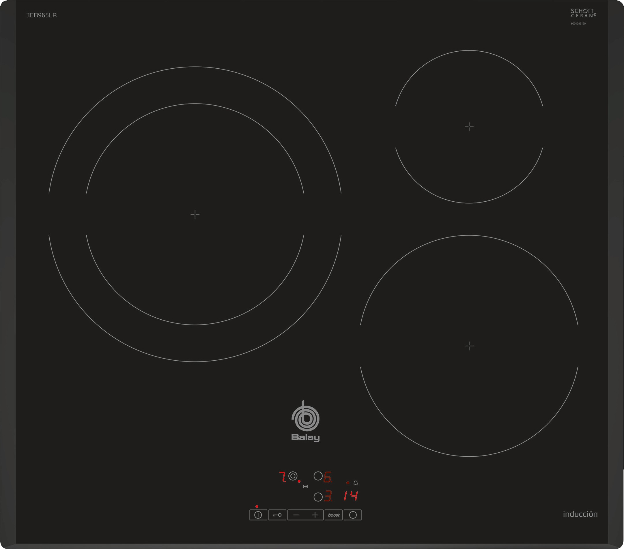 Induccion Balay 3EB965LR, 60 cm., 3 zonas, Negra/Biselada, Control táctil de fácil uso, zona de 28 cm