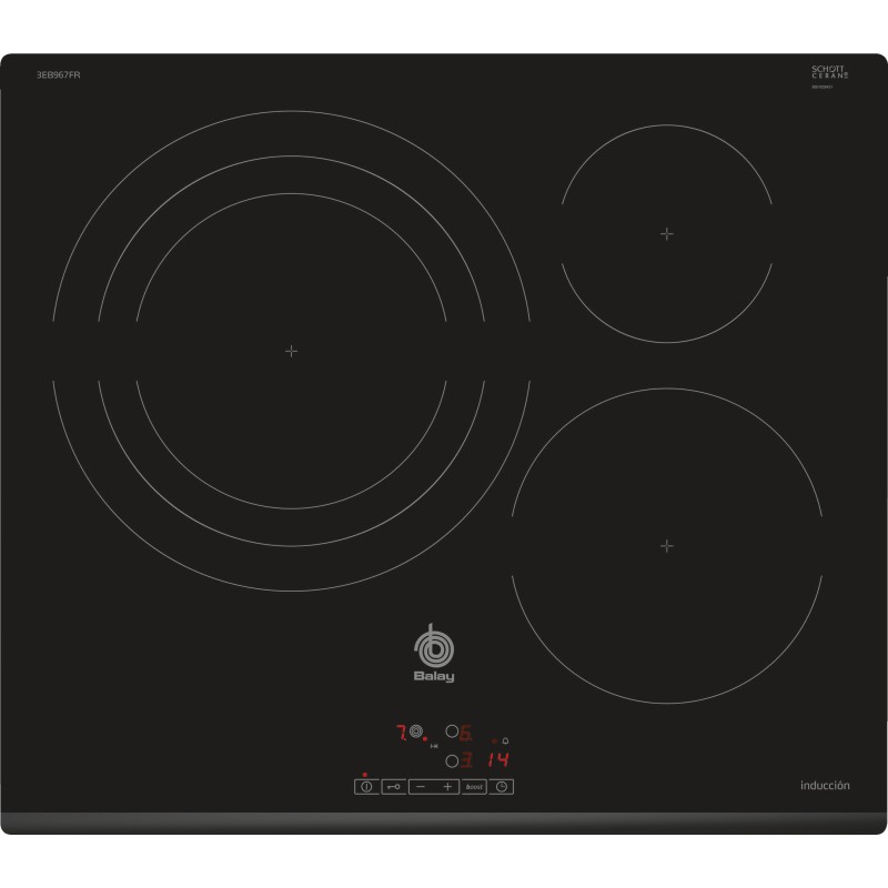 Induccion Balay 3EB967FR, 60 cm., 3 zonas, Negra, Bisel delantero, Control táctil de fácil uso, zona de 32 cm