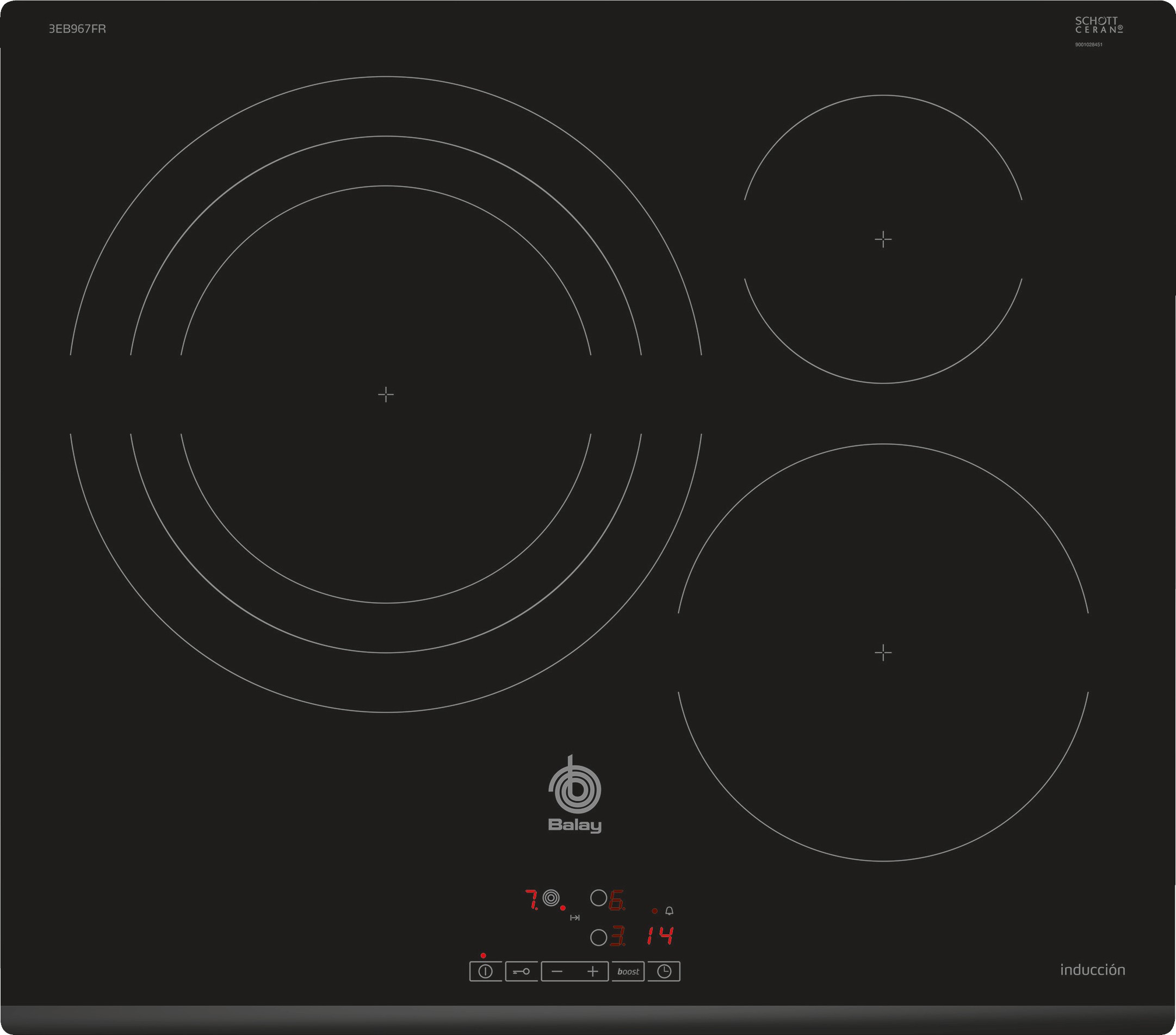 Induccion Balay 3EB967FR, 60 cm., 3 zonas, Negra/Bisel delantero, Control táctil de fácil uso, zona de 32 cm