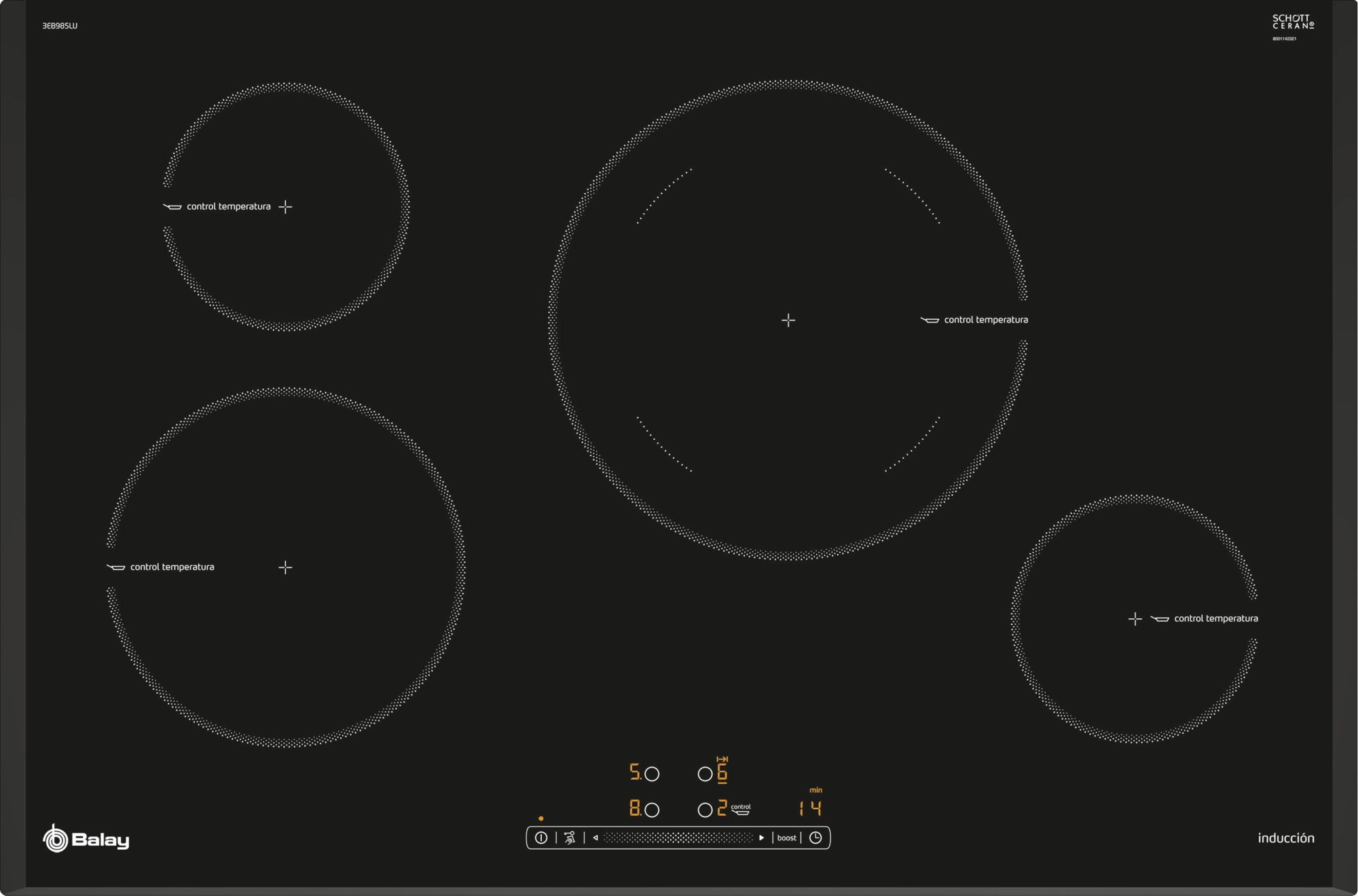 Induccion Balay 3EB985LU, 80 cm., 4, Negra/Biselada, Control Deslizante, zona de 28 cm., control de tª en todas las zonas