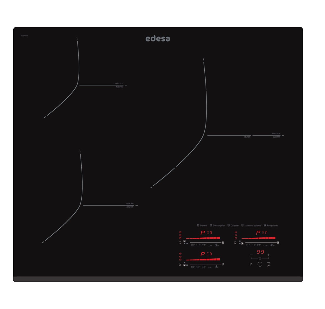 Edesa EIMS-6330 B, Negro, Integrado, 59 cm, Con placa de inducción, 3 zona(s), 3 zona(s)