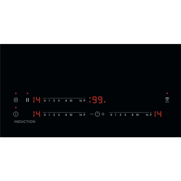 Induccion Electrolux EIT60342, Induction, 3 zonas: 28 cm, 21 cm y 14,5 cm, Biselada frontal, 60 cm, Zona 5,2 kW, Controles Slider (0-14 con 3 zonas PowerBoost) individuales con temporizador individual, Función Pausa, Bloqueo de seguridad, H2H