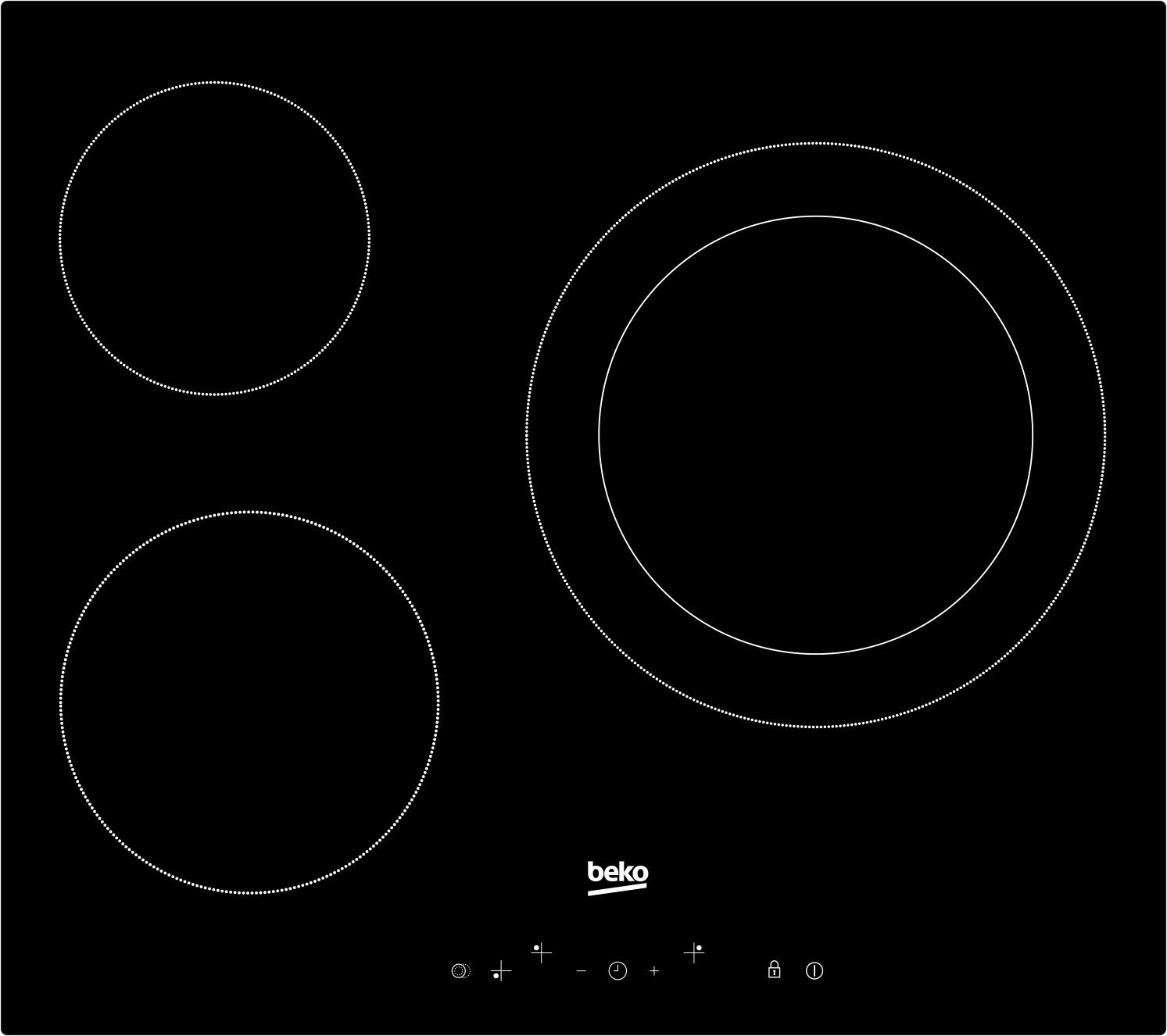 Induccion Cata IB-5003 BK, 3 zonas de cocción: Delantera izquierda: 1 zona de 180mm de 1,8kW (max 2,3kW) Trasera Izquierda: 1 zona con función Booster de 160mm de 1,2kW (máx. 1,5kW) Derecha: 1 zona con función Booster de 280mm de 2,3kW (máx. 3kW) Control