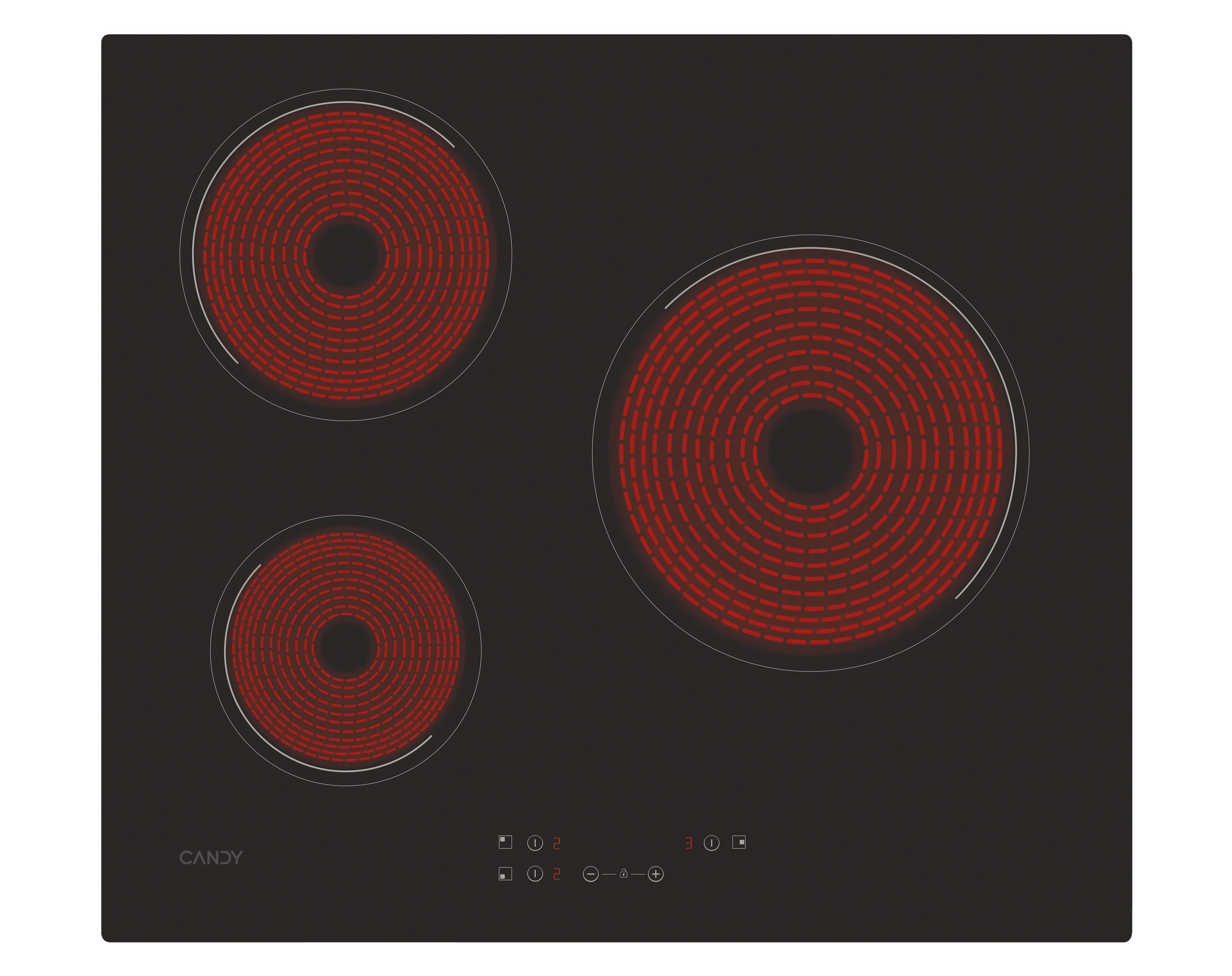Candy CH63CC/4U2, Negro, Integrado, 59 cm, Cerámico, Vidrio y cerámica, 3 zona(s)