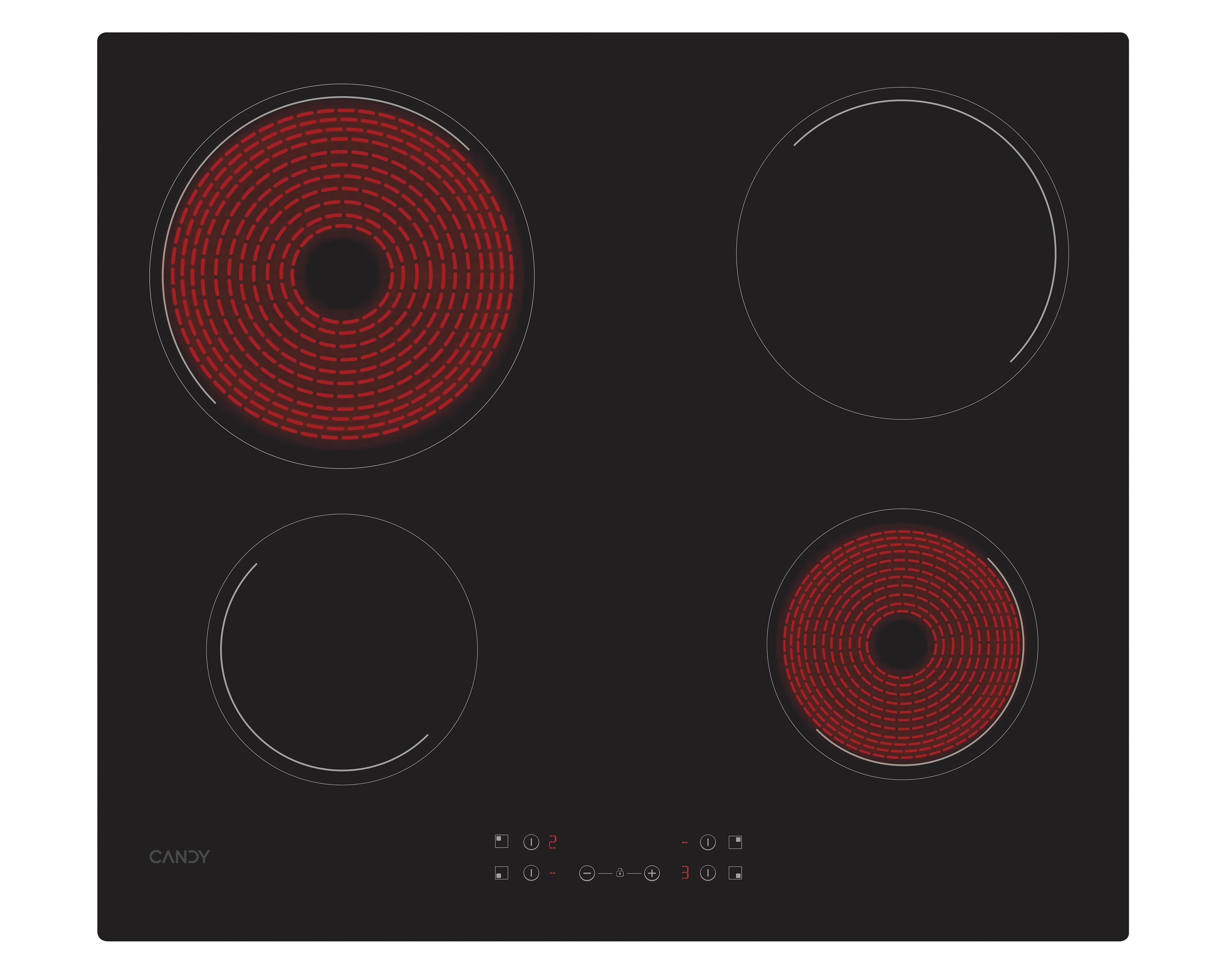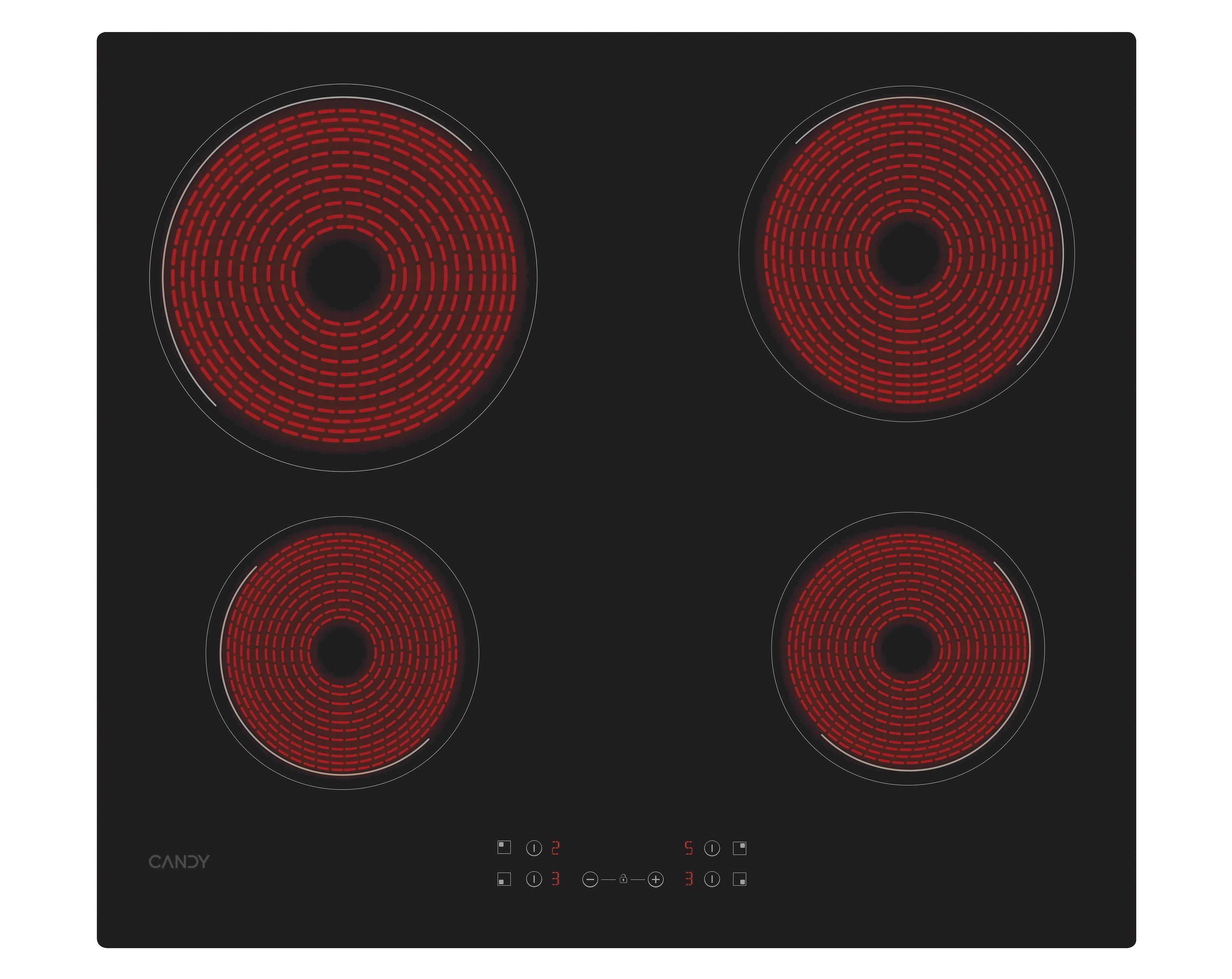 Candy Idea CH64CCB/4U2, Negro, Integrado, 59 cm, Cerámico, Vidrio y cerámica, 4 zona(s)