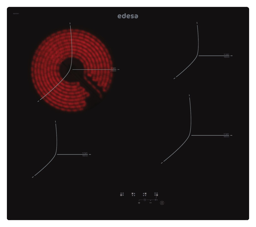 Edesa EVT-6422 R, Negro, Integrado, 59 cm, Cerámico, Vidrio y cerámica, 4 zona(s)