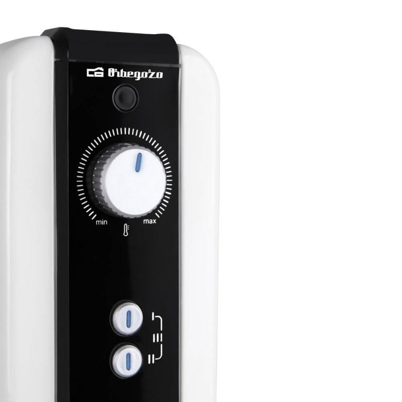 Radiador de aceite Orbegozo RH1500, De Aceite. 1500 W. 7 Elementos Caloríficos De Gran Inercia Térmica. Termostato Regulable. Sistema De Protección Contra Sobrecalentamiento. 3 Potencias De Calor. Asa Para Transporte. Recogecables. Luces Led De Funcionami