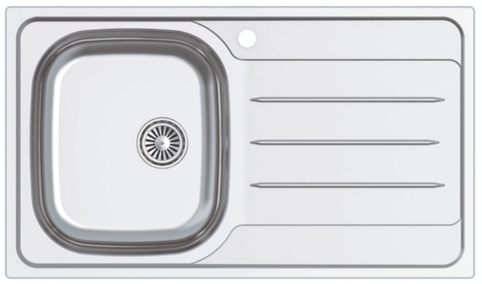 Fregadero Cata CDP 1 ED A, Sobre Encimera, Cubeta cuadrada con escurridor Instalación en mueble mínimo de 45cm Dimensiones: 86 x 50 cm Profundidad de la cubeta 18cm Base con fondo fono absorbente Acero inoxidable AISI 304 18 10 Válvula cana