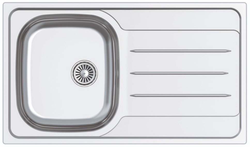 Fregadero Cata CDP 1 REV A, Sobre Encimera, Cubeta cuadrada con escurridor reversible Instalación en mueble mínimo de 45cm Dimensiones: 86 x 50 cm Profundidad de la cubeta 18cm Base con fondo fono absorbente Acero inoxidable AISI 304 18 10